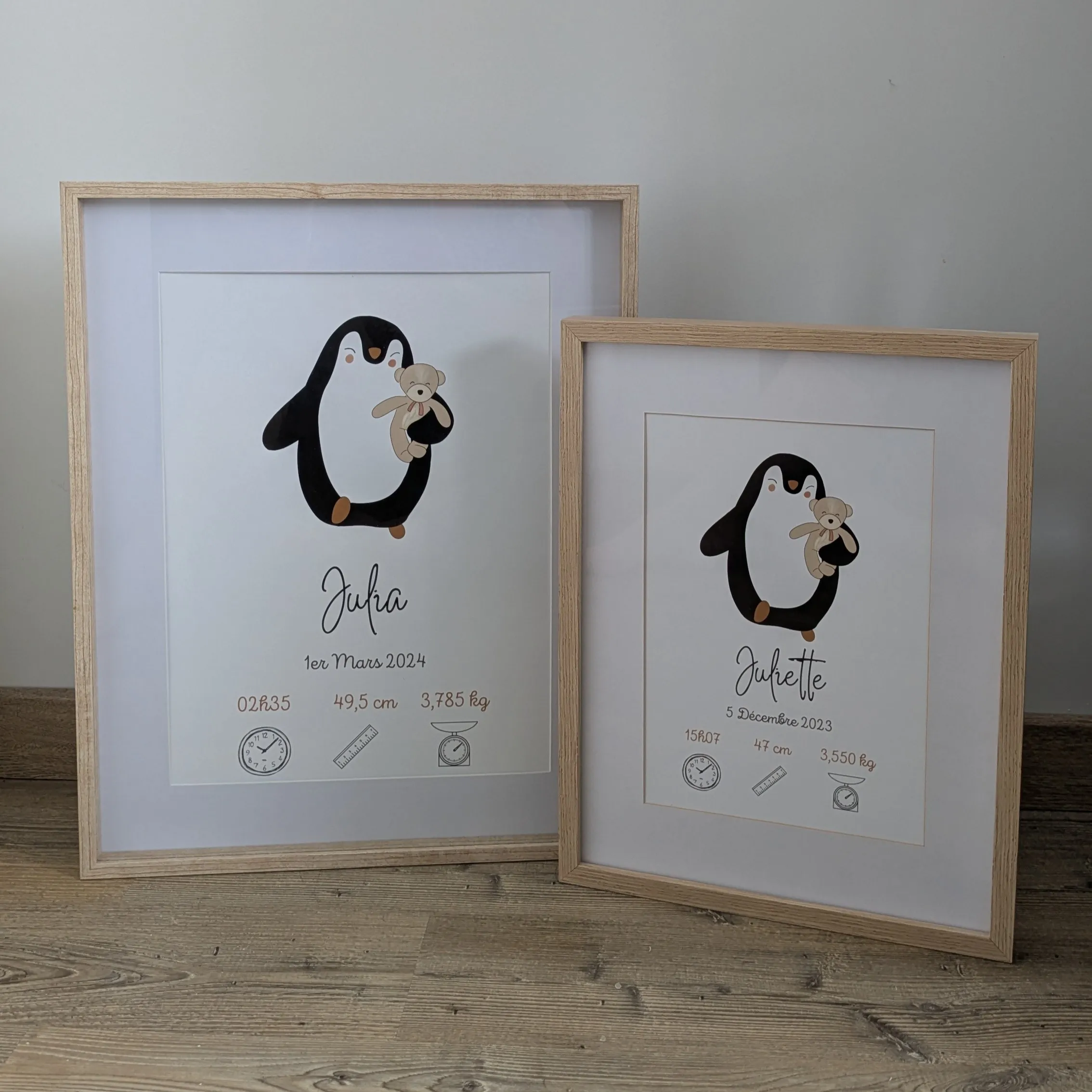 Offrez une affiche de naissance personnalisée pingouin pour célébrer les tout premiers instants de bébé 🐧.
