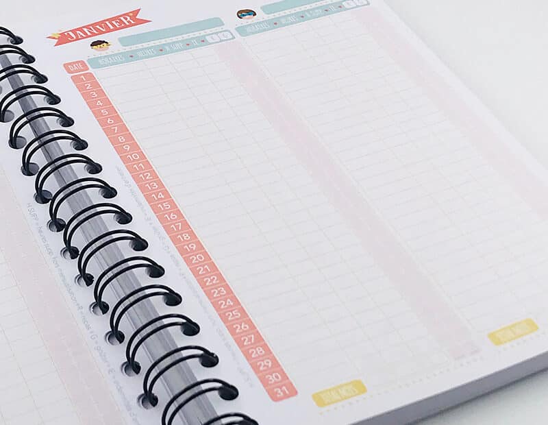L’agenda de nounou perpétuel utilisable jusqu’à 4 enfants.