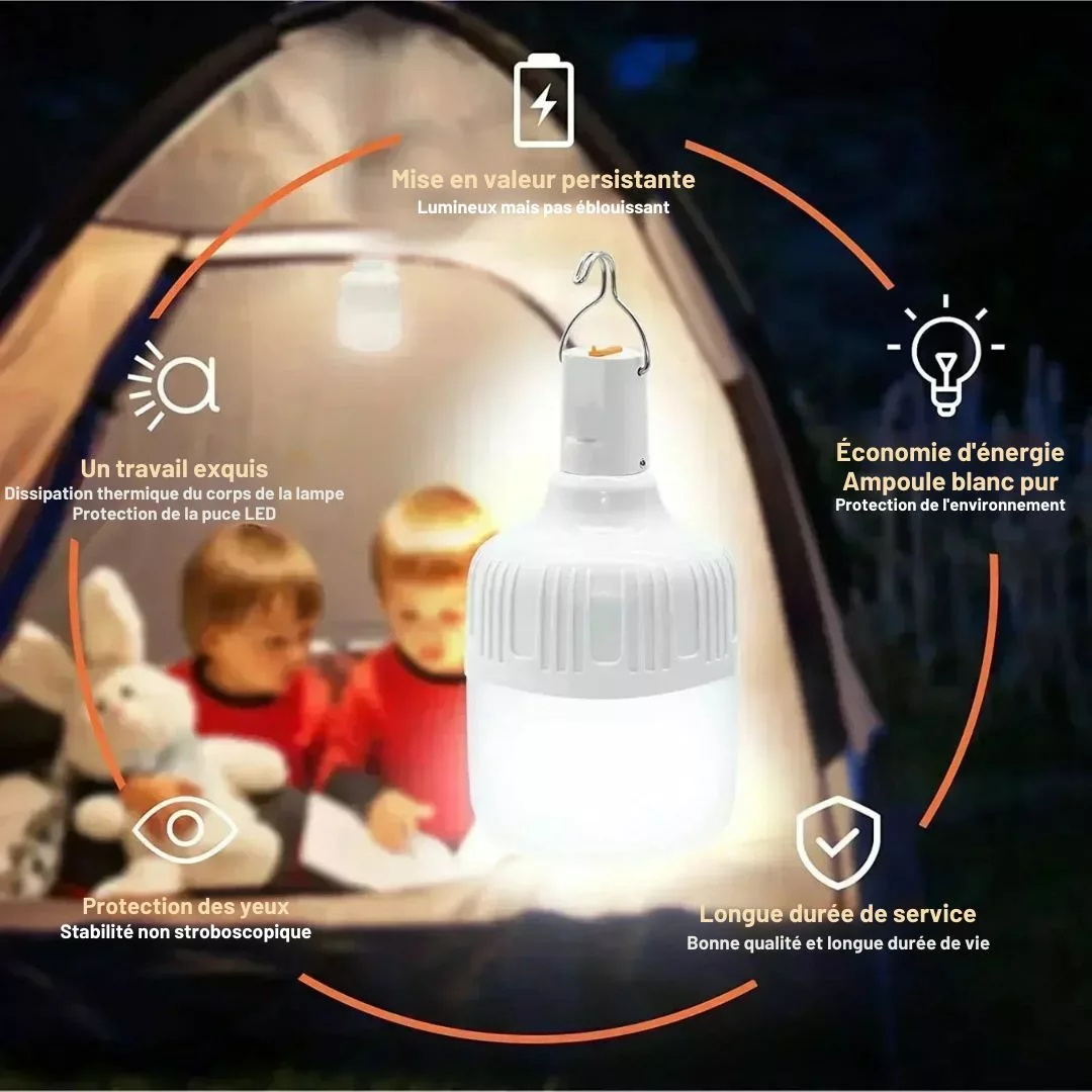 Ampoule LED Rechargeable pour camping – Éclairage puissant sans électricité – Idéale tente, bivouac, urgence