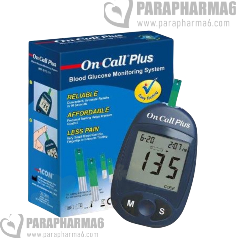 Lecteur de glycémie On-Call® Plus Système de surveillance de la glycémie Le lecteur de glycémie On-Call® Plus utilise une technologie biocapteur de nouvelle génération, offrant des résultats fiables, pratiques et accessibles. Deux systèmes sont disponibles pour s’adapter à votre mode de vie et vous aider à mieux gérer votre diabète. Avantages du système On-Call® Plus :• Résultats rapides en seulement 10 secondes• Échantillon réduit de 1 µL pour un prélèvement moins douloureux• Codage automatique• Mémoire intégrée pour 300 tests avec date et heure• Gestion avancée des données pour un meilleur suivi glycémique