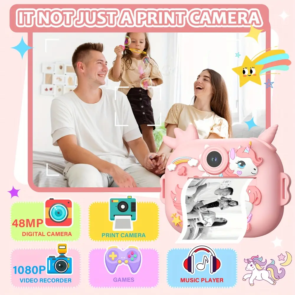 Appareil photo instantané enfant avec impression thermique – licorne ludique 48MP
