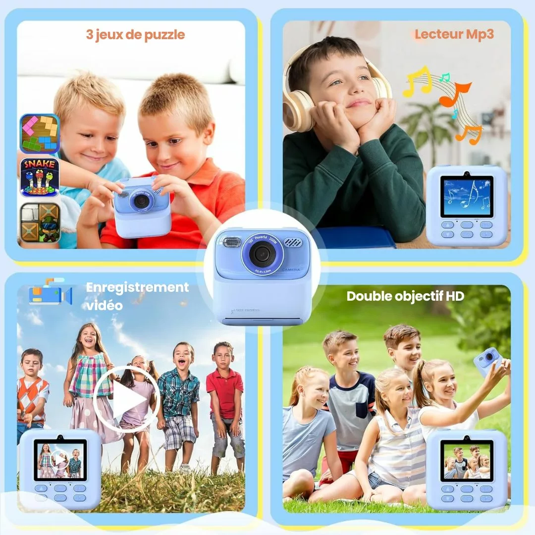 Appareil photo instantané enfant – Impression thermique rapide en 3 secondes