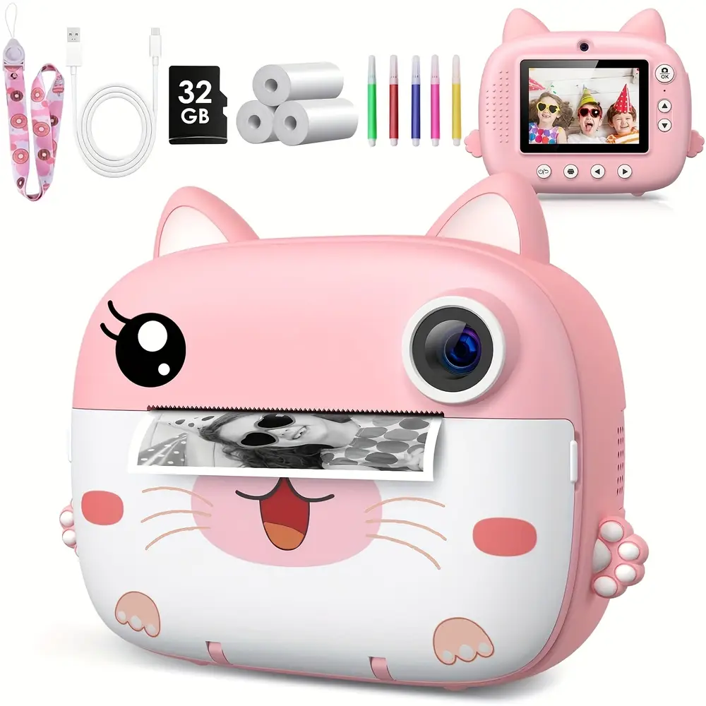 Appareil photo instantané enfant 1080P avec impression et carte 32 Go – Jouet ludique