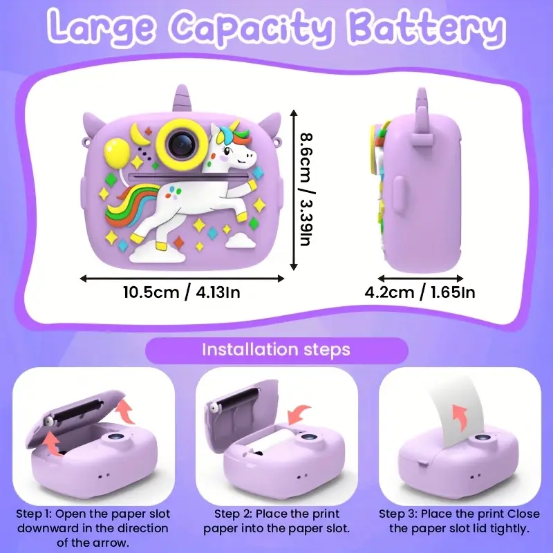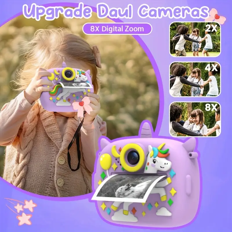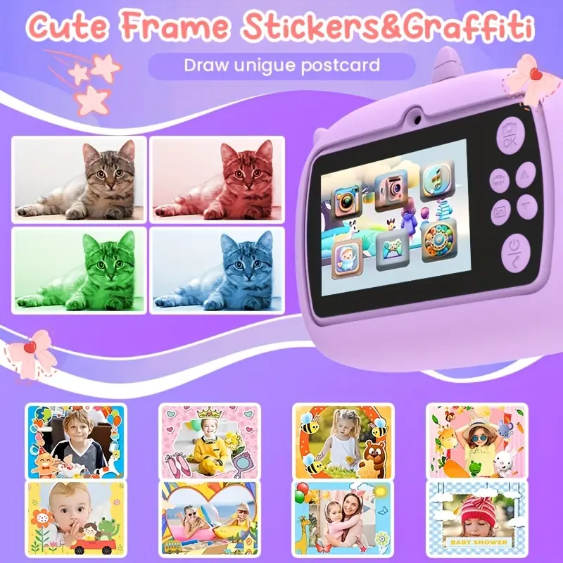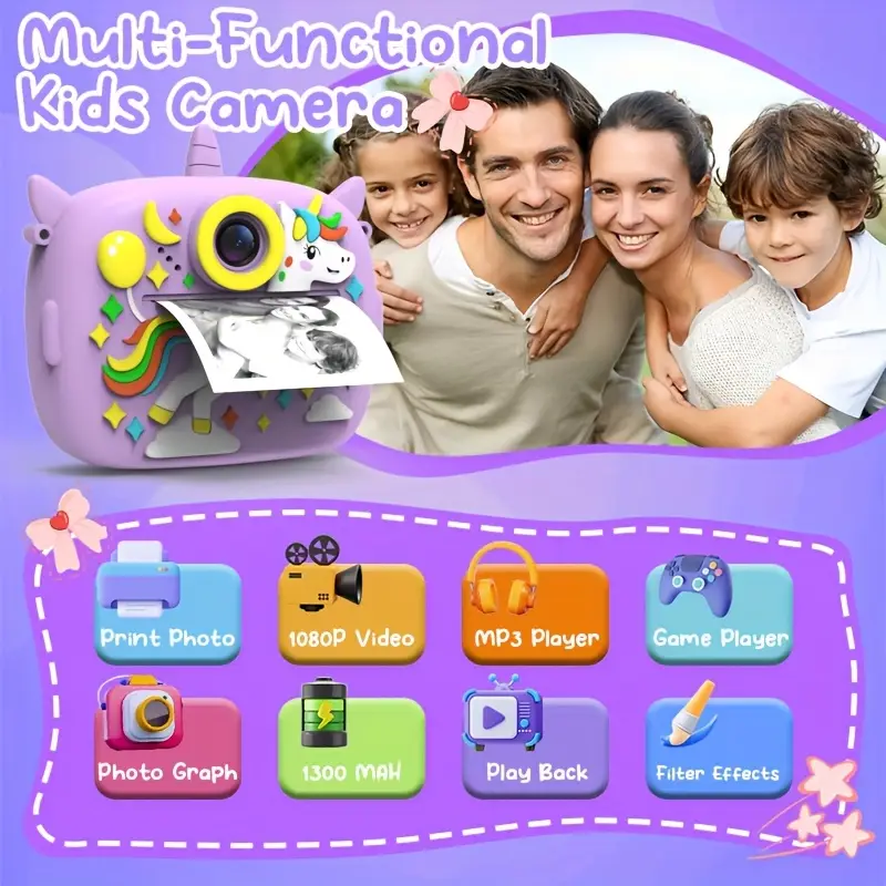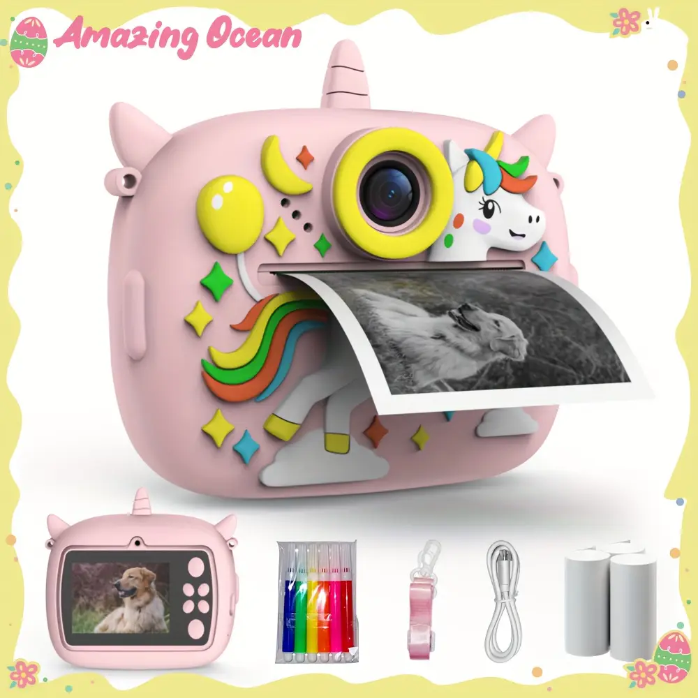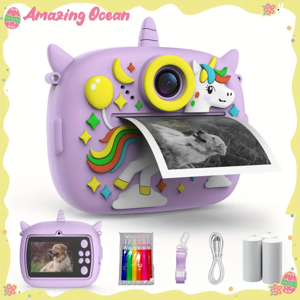 Appareil photo instantané enfant avec impression thermique – licorne ludique 48MP