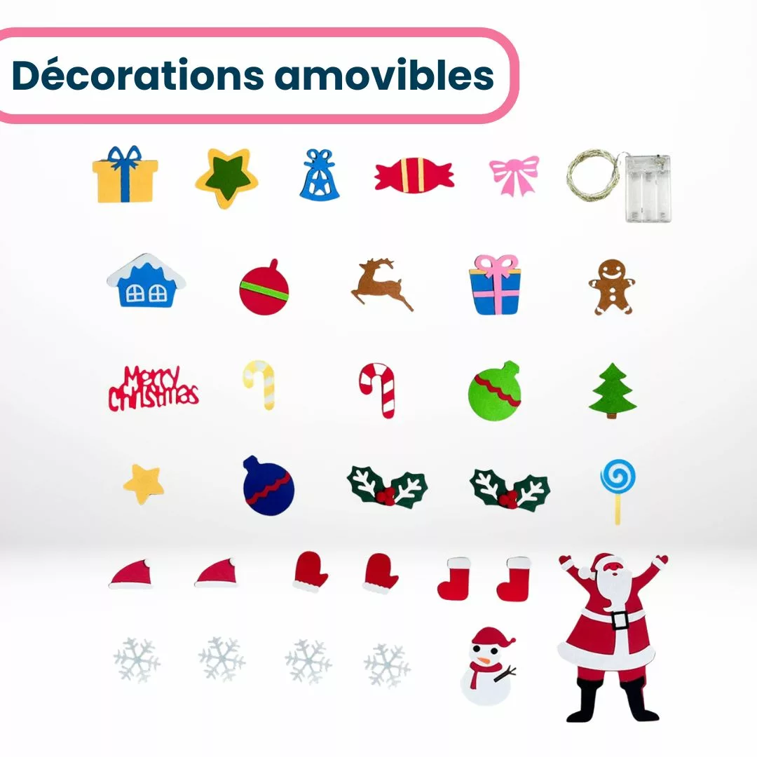 - Décorations amovibles pour personnaliser l’arbre selon les envies de chaque enfant.