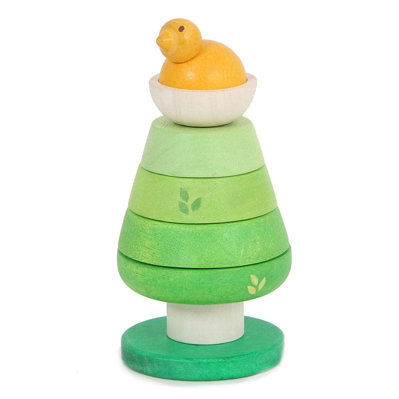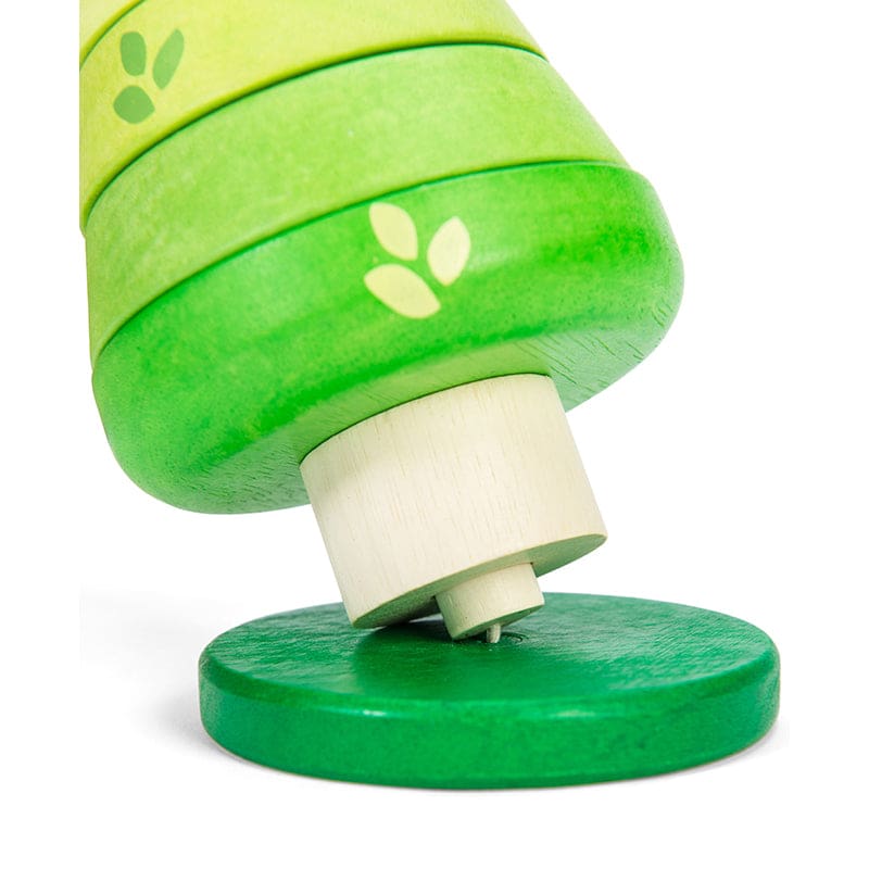 Aidez votre enfant à améliorer sa motricité fine grâce à cet arbre empilable en bois composé de diverses pièces de tailles variées.