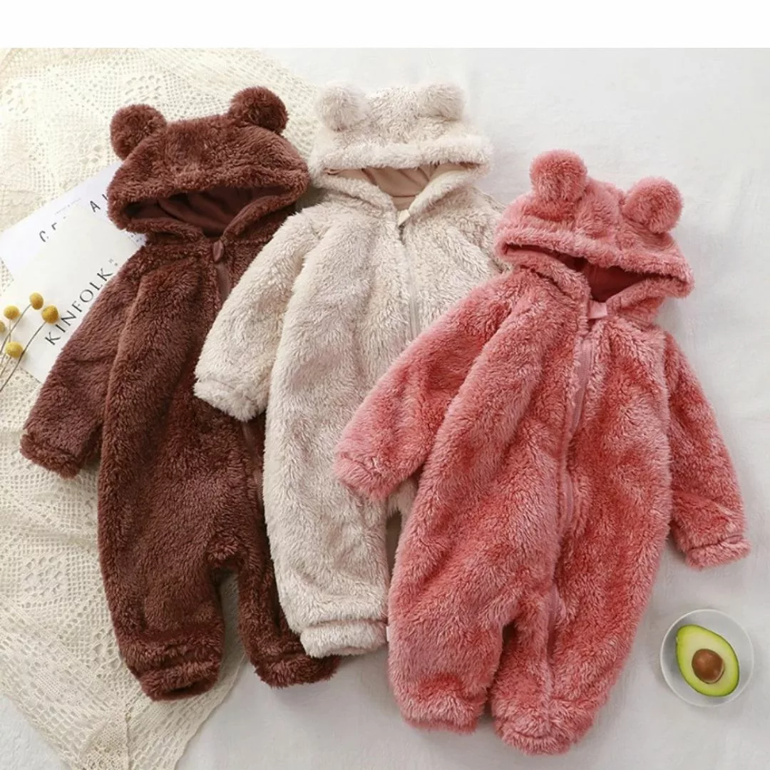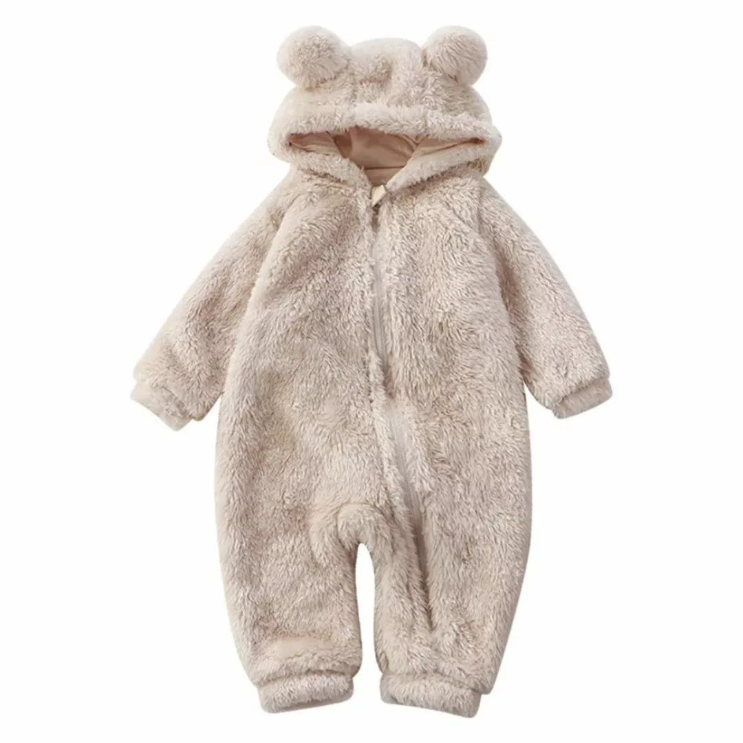 Barboteuse bébé à capuche avec oreilles 3D – motif animal doux et ludique