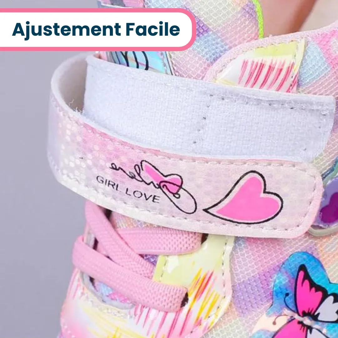 - Motifs captivants : Les Basket Reine des Neiges Lumineuse Fille arborent des motifs arc-en-ciel colorés qui captivent l’imagination et ajoutent une touche de magie à chaque pas.