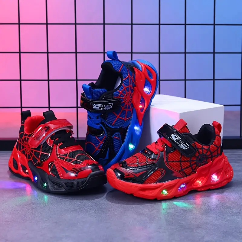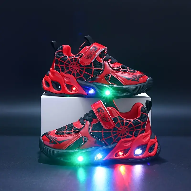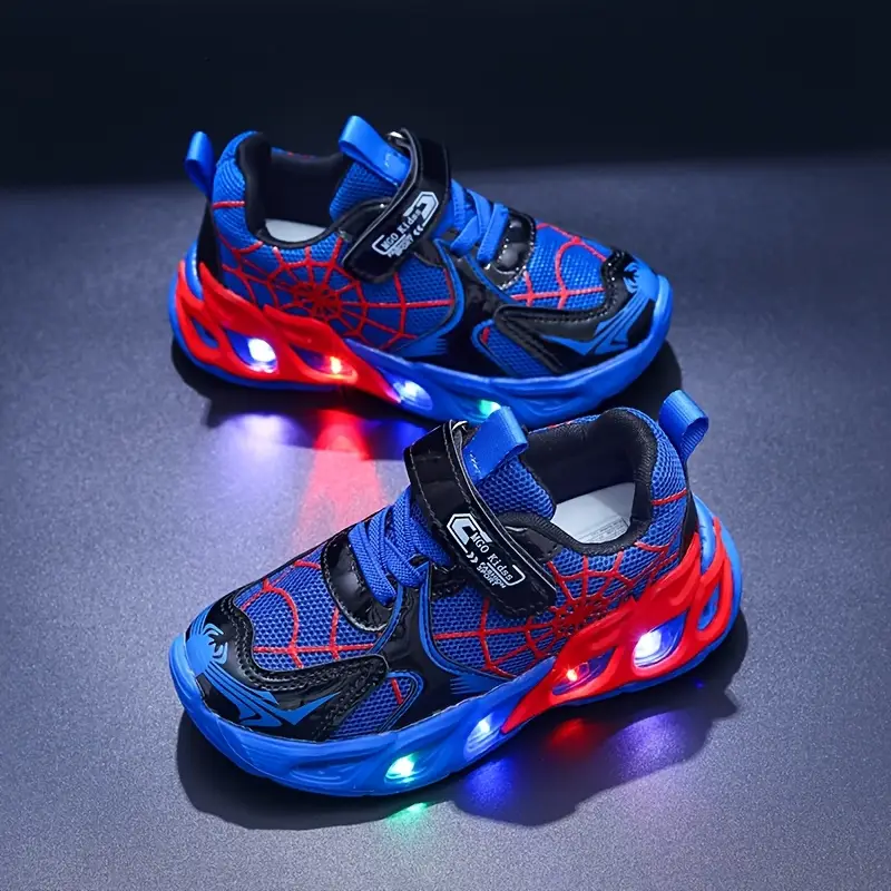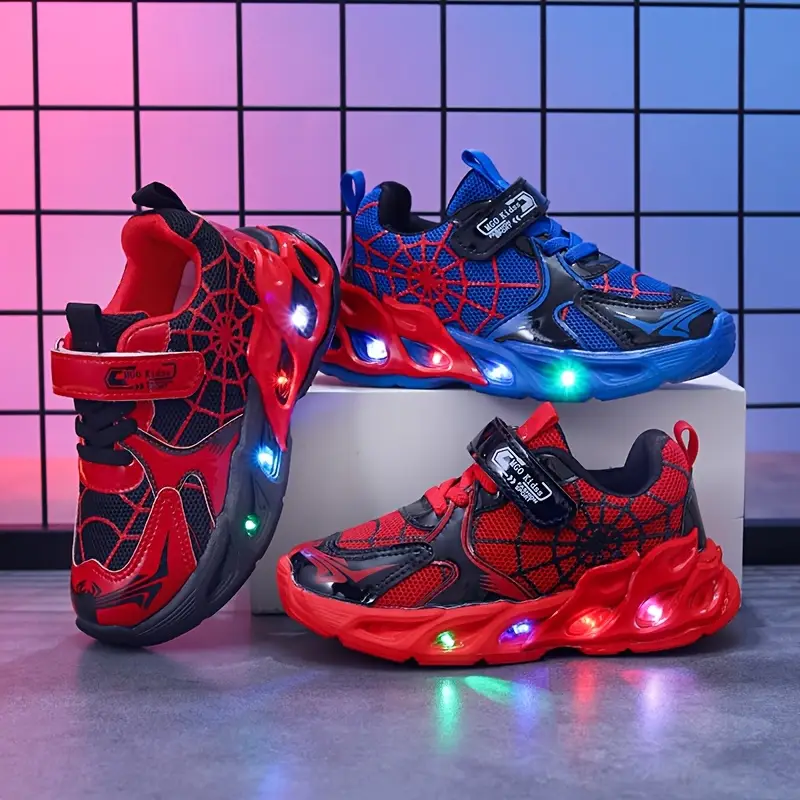 - Offrez à votre enfant un design spectaculaire avec ces chaussures lumineuses enfant en motif toile d’araignée