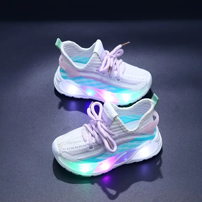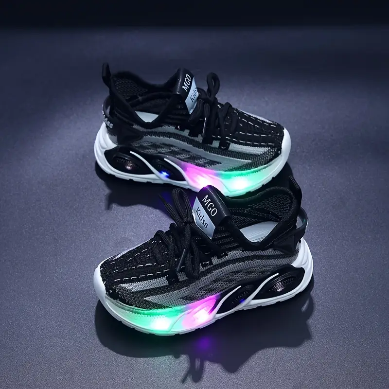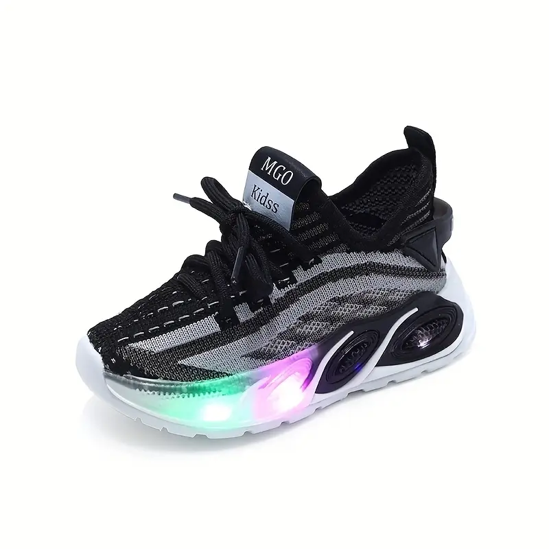 - Les MGO Kidss Knitted Mesh Sneakers avec lumières sont parfaites pour les enfants âgés de 1 à 6 ans en quête de style et de confort au quotidien.
