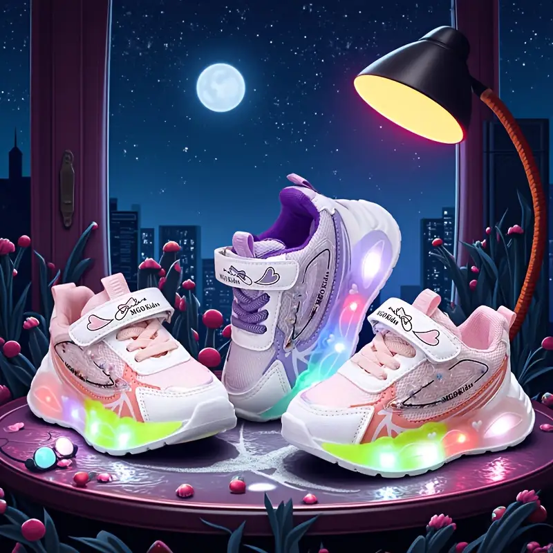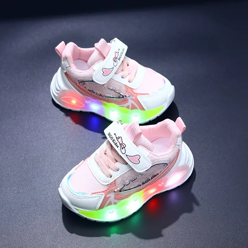 - Offrez à votre enfant un look tendance avec ces chaussures LED roses MGO au design unique, parfaitement adaptées aux fillettes de 1 à 6 ans.