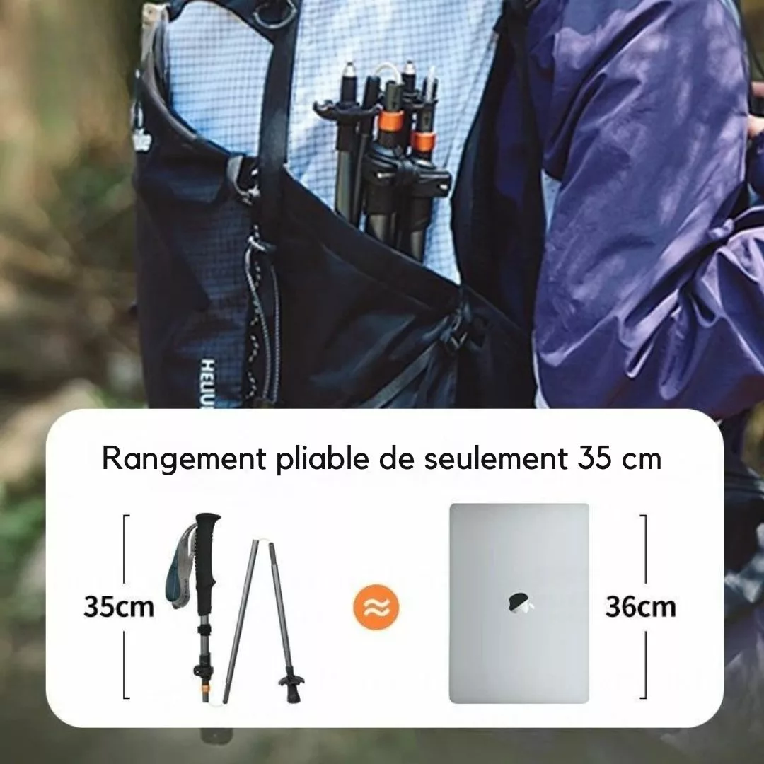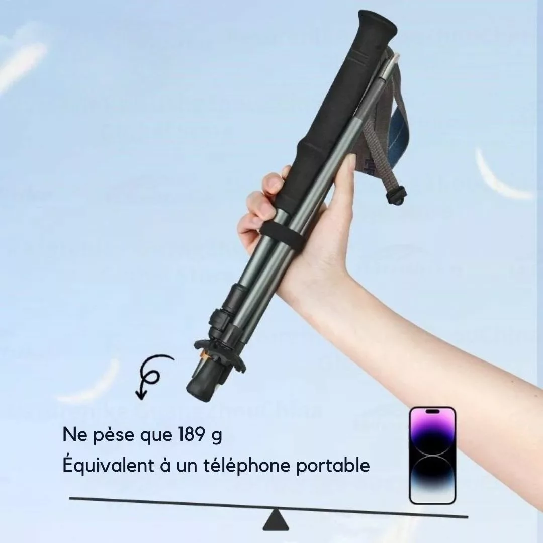 Ce bâton est léger et facilement pliable, s’insérant aisément dans votre sac de randonnée pour un transport simple et efficace.