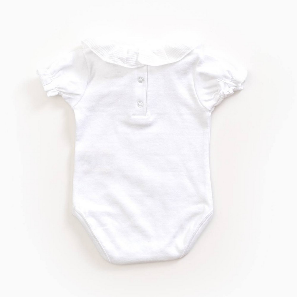 Body manches courtes – collerette – Play Up –  Blanc – en coton biologique.