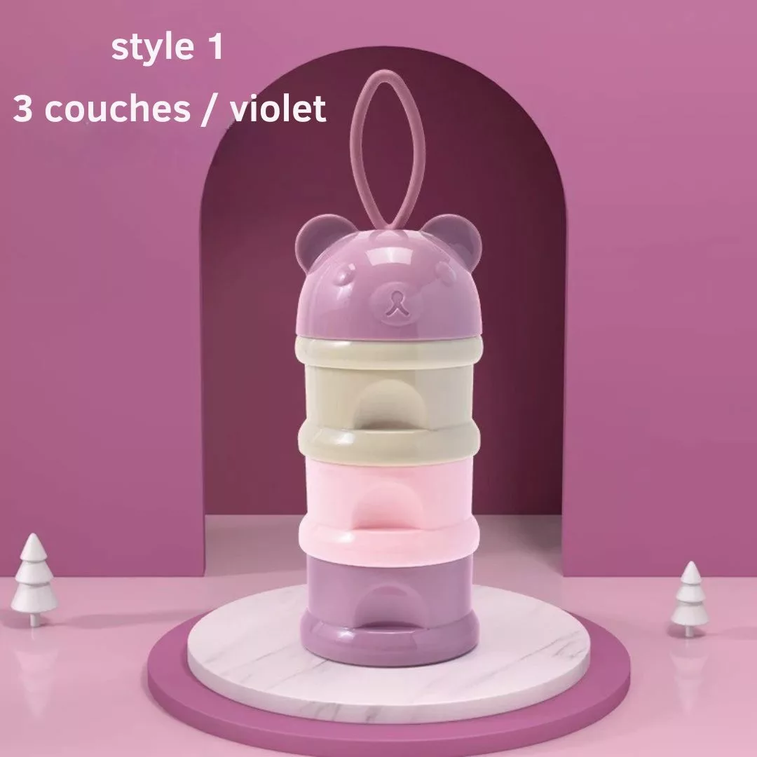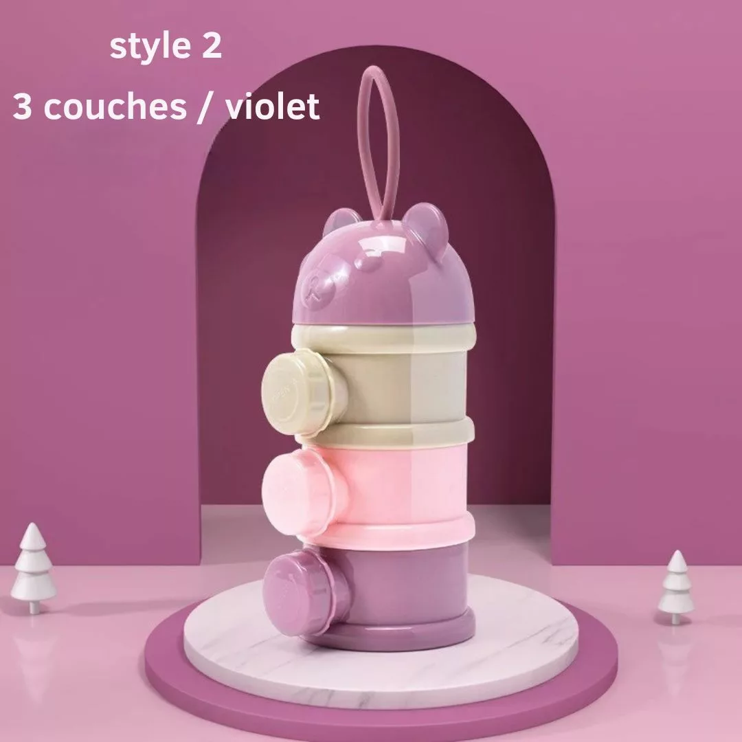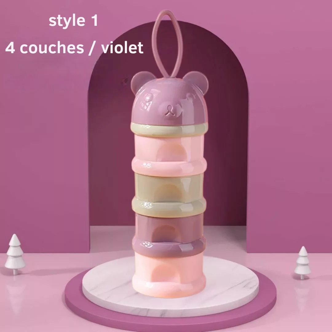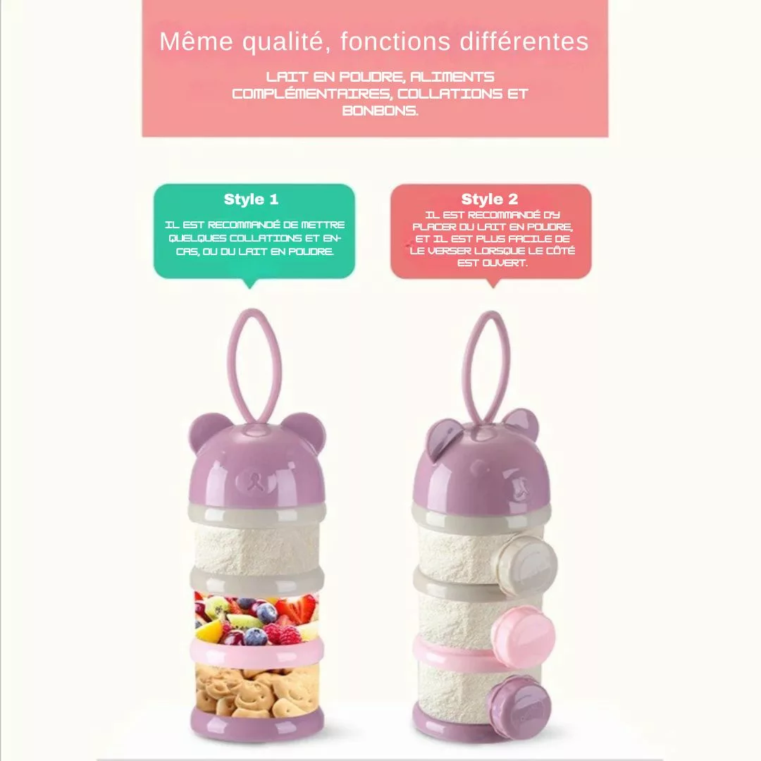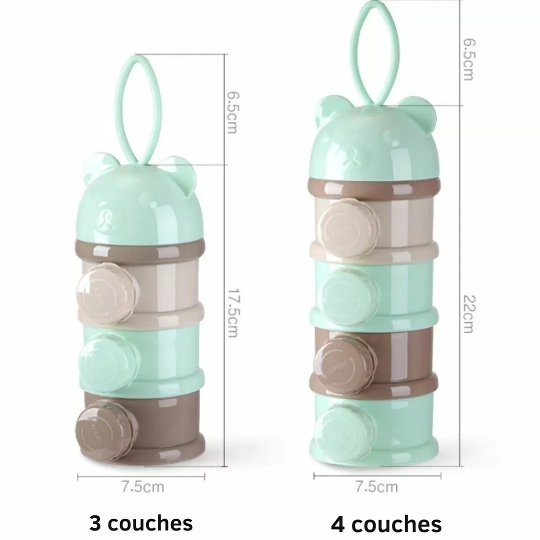 - Capacité : Compartiments multiples permettant de stocker différentes portions de lait en poudre.