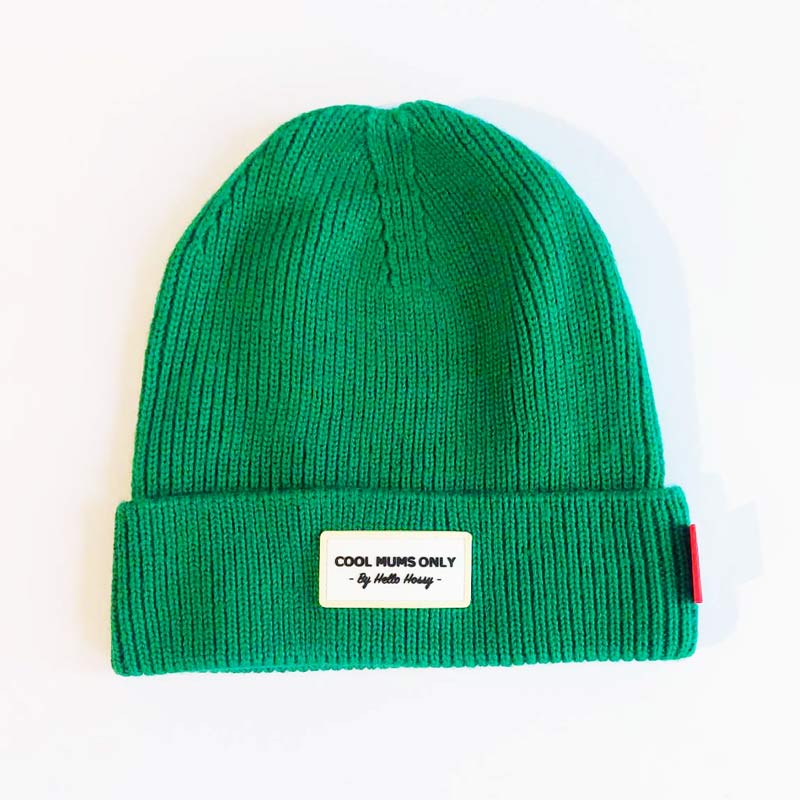 Bonnet adulte Pop Croco Accessoire mode automne-hiver pour maman cool Coloris: Vert Étiquette message: Cool Mums Only Matériaux: 70% Acrylique 30% Laine Également disponible en versions Cool Dads et en tailles enfant « Cool Kids » Jolie boîte cartonnée Design: Hello Hossy, France
