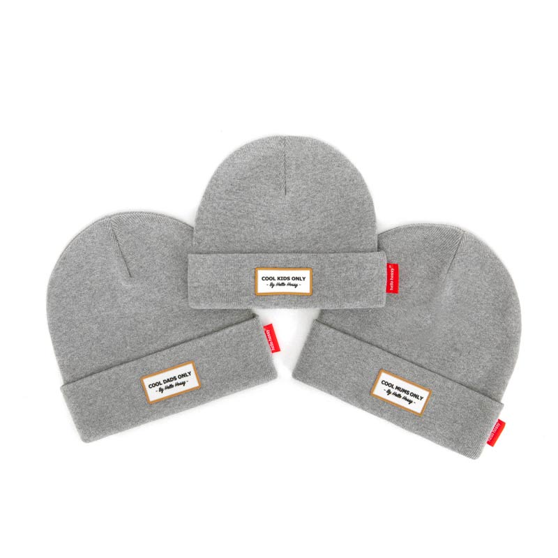 Bonnet Urban Grey adulte Coloris: Gris Étiquette message: Cool Mums Only Matériaux: 100% Coton Également disponible en versions Cool Dads only et enfant « Cool Kids only » (3 tailles enfant: 9-18 mois, 2-5 ans et +6ans) Jolie boîte cartonnée Design: Hello Hossy, France