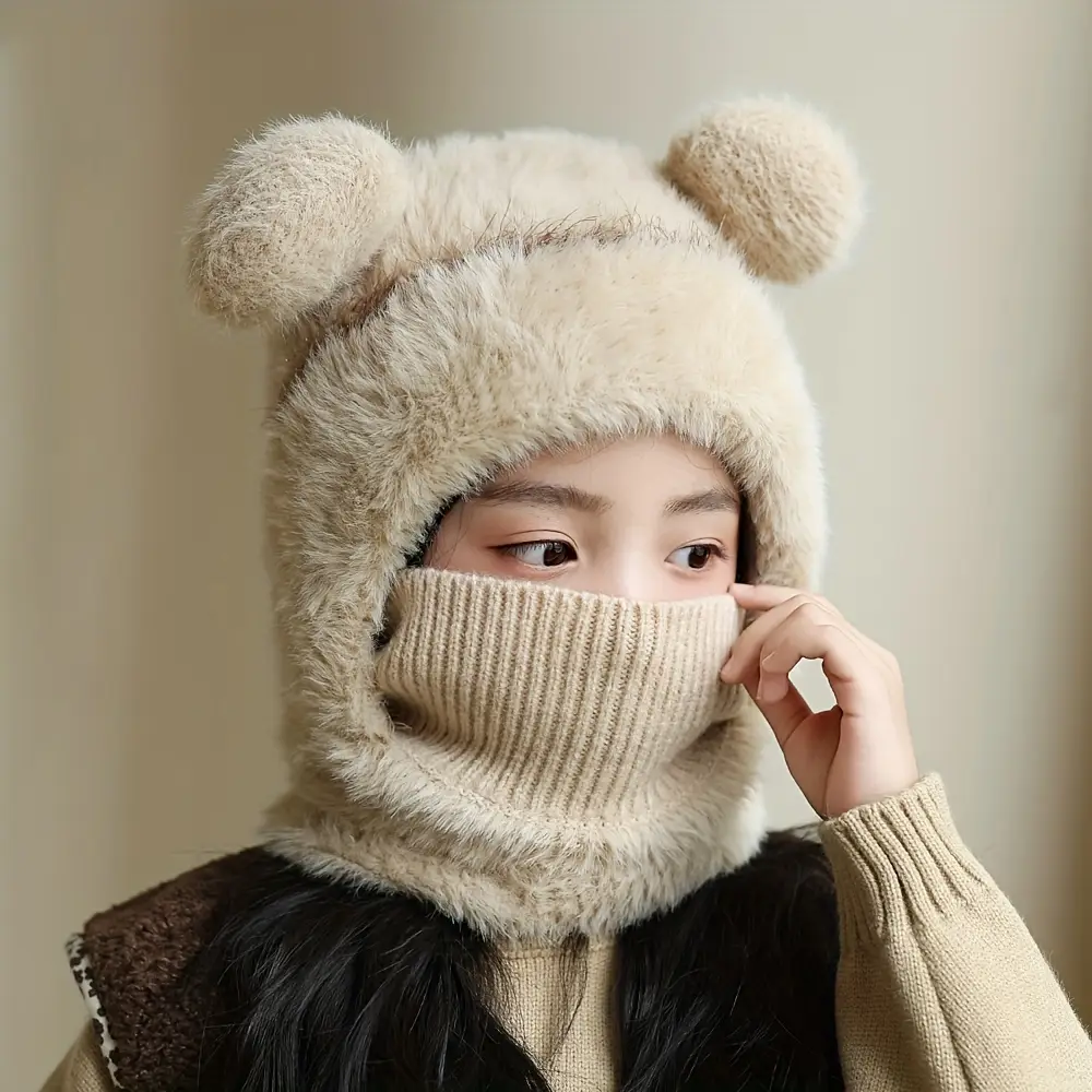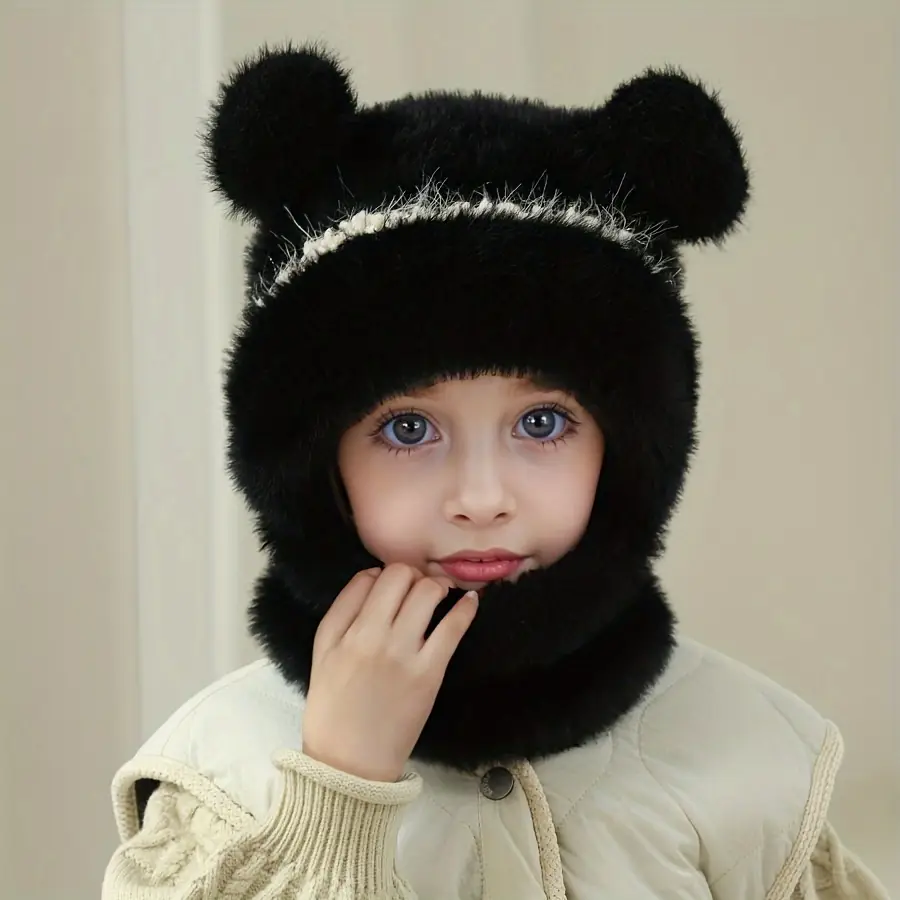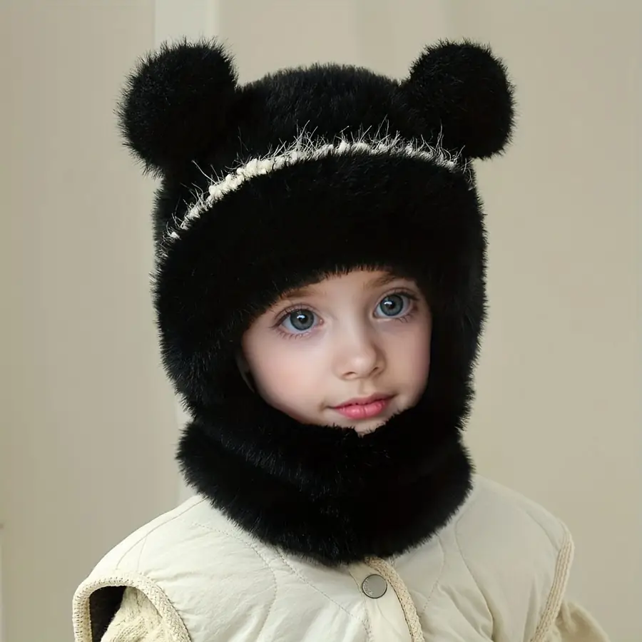 Bonnet enfant tricoté avec cache-cou intégré – chaud et idéal en hiver