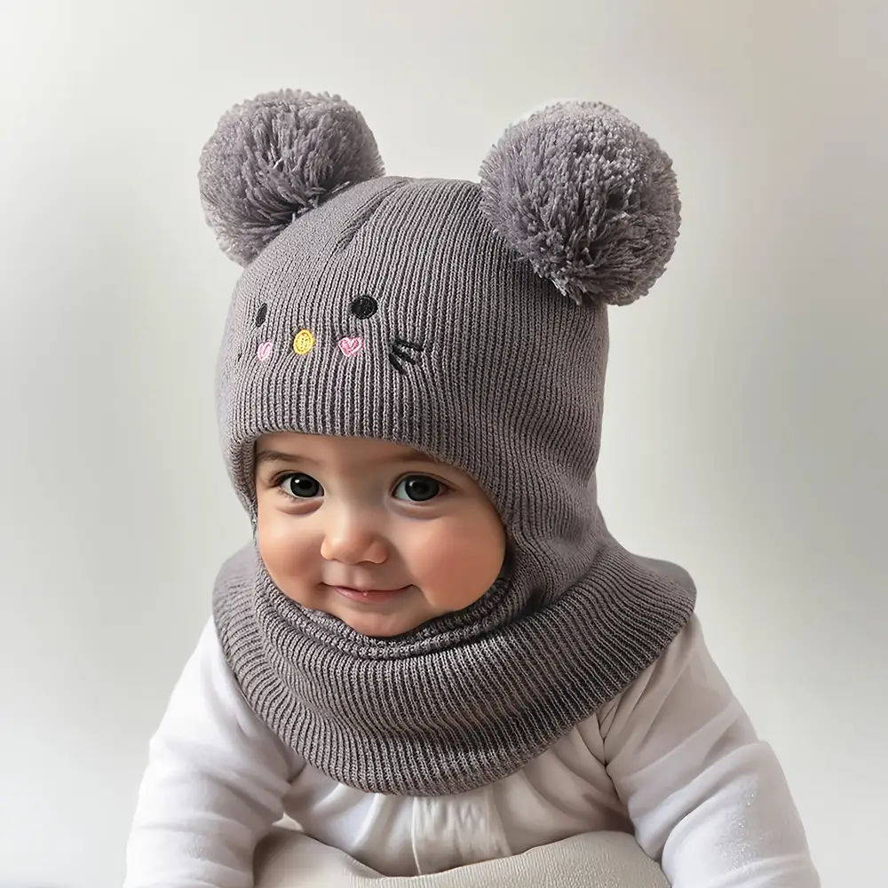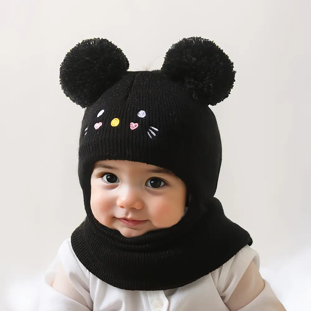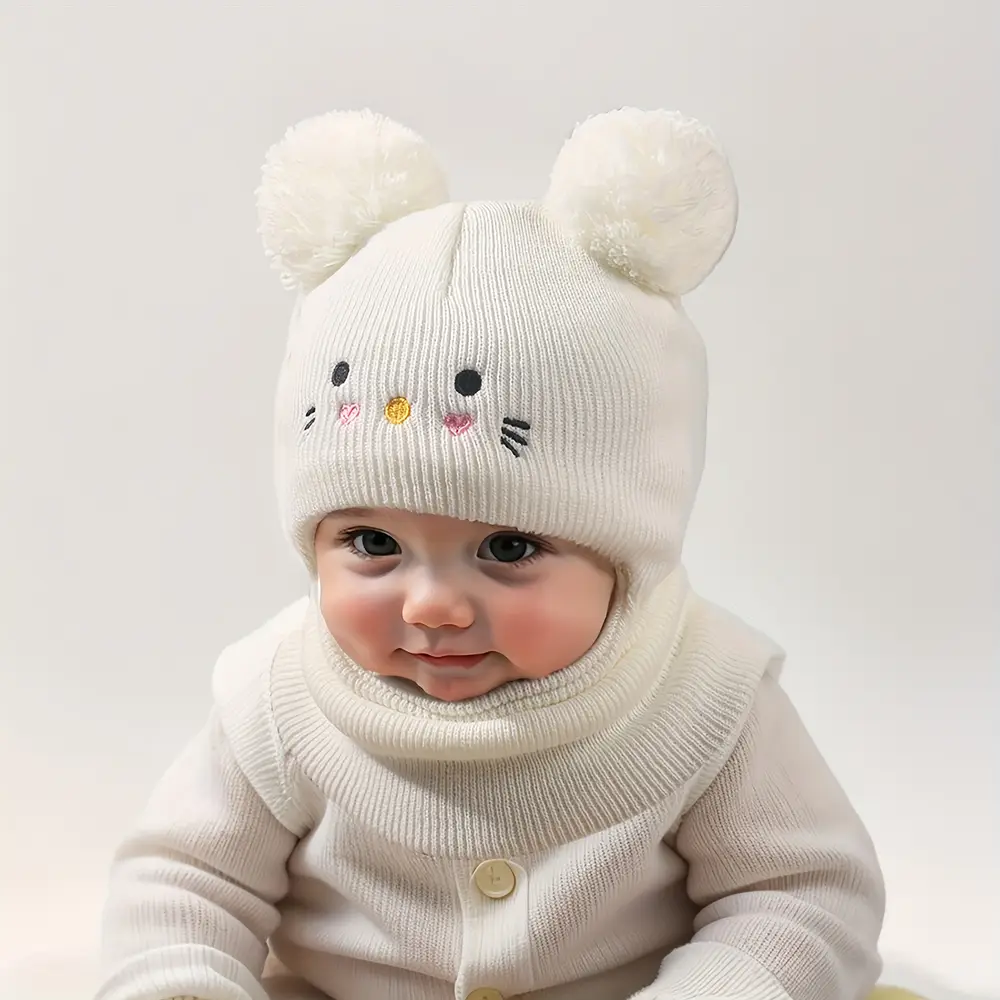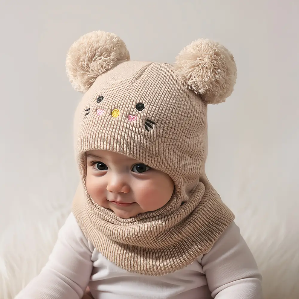 Bonnet enfant tricoté avec oreilles de chat et cache-cou assorti – 1 pièce