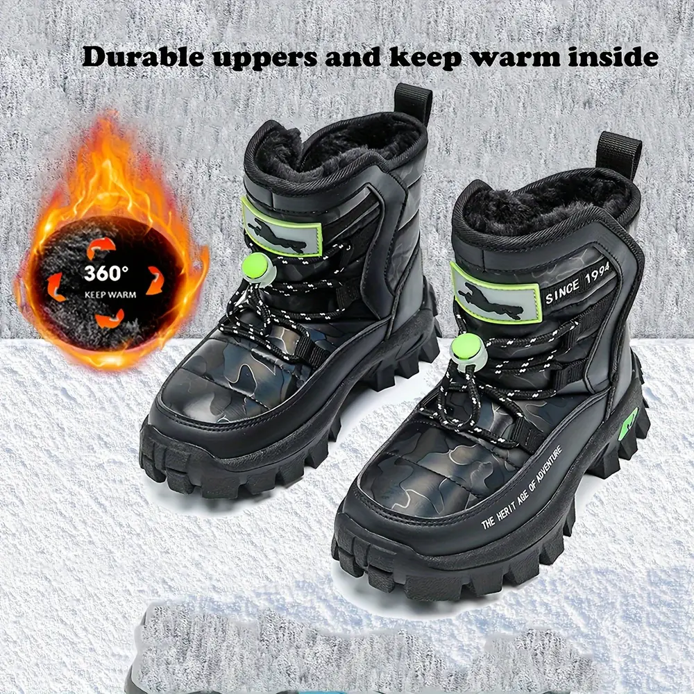 Bottes de neige enfant imperméables camouflage – chaleur et adhérence hiver