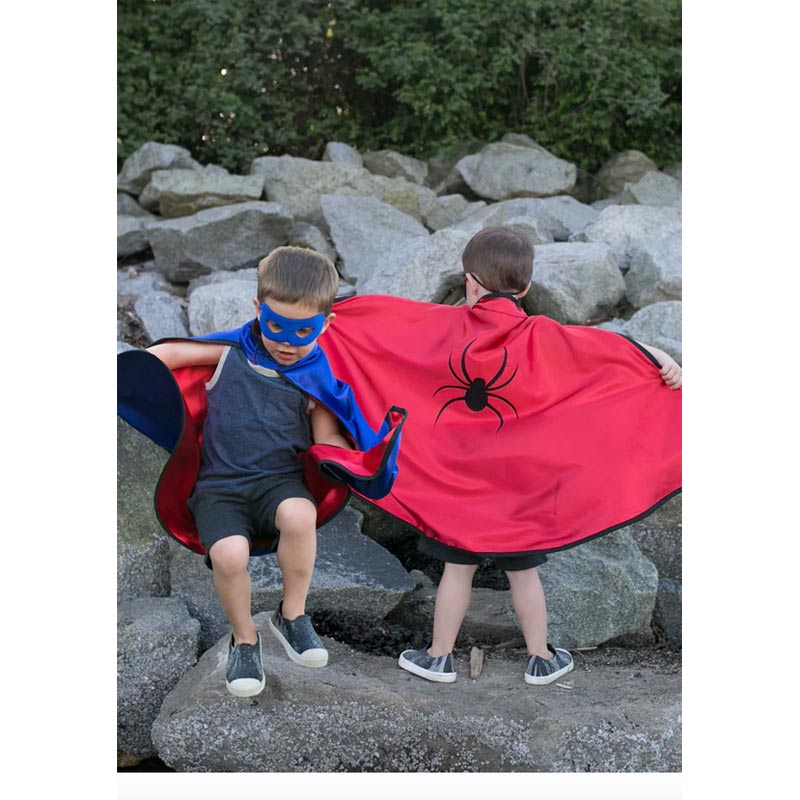 Cape sur les épaules et masque sur le visage, votre enfant se transformera et incarnera ses héros de fiction préférés pour vivre de nombreuses aventures imaginaires! Cet ensemble de 2 pièces de déguisement, cape et masque réversibles, de la marque canadienne Great Pretenders fera un beau cadeau d’anniversaire ou de Noël pour les kids qui aiment incarner des personnages fantastiques et s’inventer d’incroyables histoires. Ces accessoires seront également parfaits à porter pour une fête costumée, pour le carnaval, à Mardi Gras ou pour la soirée d’Halloween.