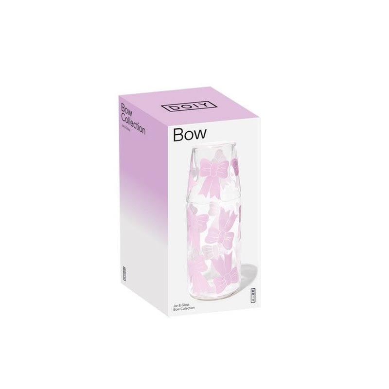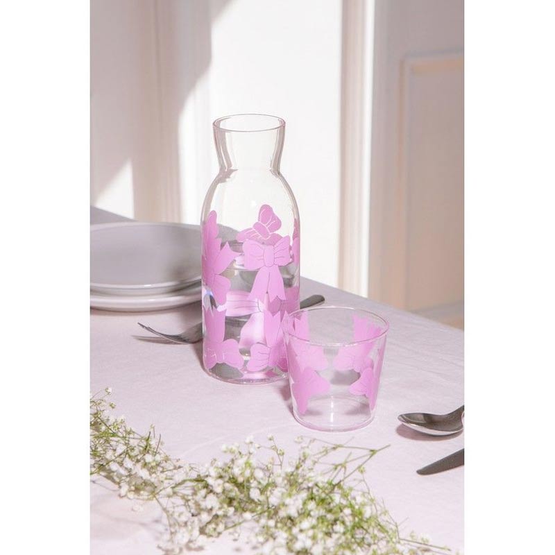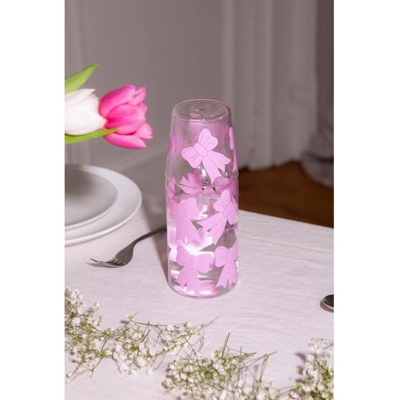 Carafe et son verre empilable Modèle: Noeuds Roses Materais: En verre Dimensions: 22 cm x 8,5 cm x 8,5 cm Accessoire cuisine déco, vaisselle de table Design DOIY