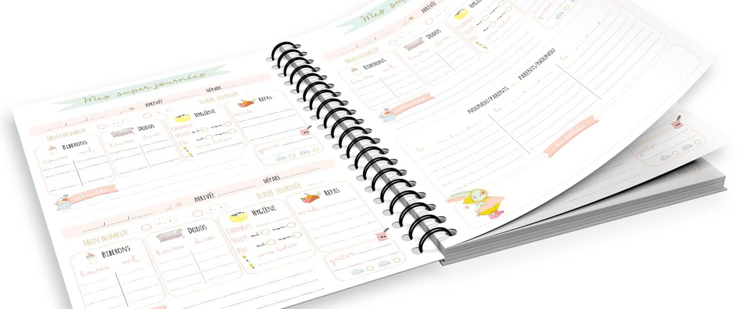 - Suivi quotidien : Pages pour noter les repas, les humeurs, les activités, les siestes et les changements.