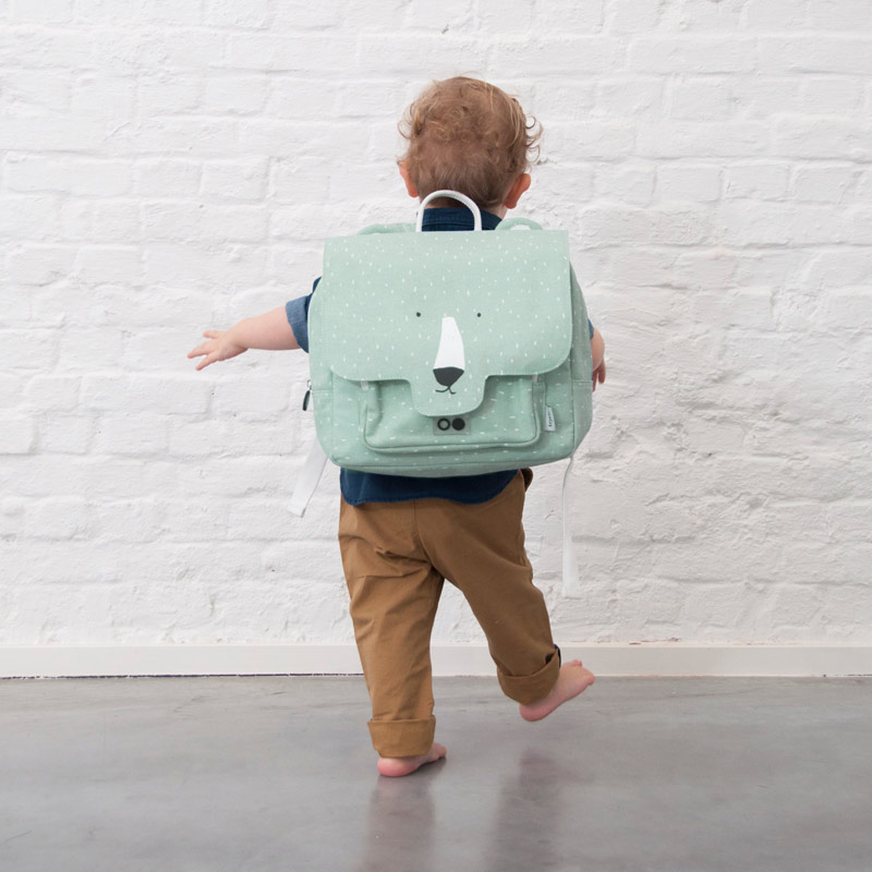 Toute douce sera la rentrée scolaire de votre enfant avec cet adorable cartable Mr Ours de la marque belge Trixie. Son format et ses dimensions conviendront aux trois années de maternelle, petite, moyenne et grande sections. À l’intérieur du compartiment principal qui se ferme grâce à une fermeture éclair, votre enfant pourra facilement emporter tout ce qu’il a besoin pour une bonne journée d’école: un change de secours, une tenue de sport, sa peluche préférée pour la sieste, une boîte à goûter remplie de biscuits, compote ou fruits, des petits chaussons pour les heures de classe ou la gym et…