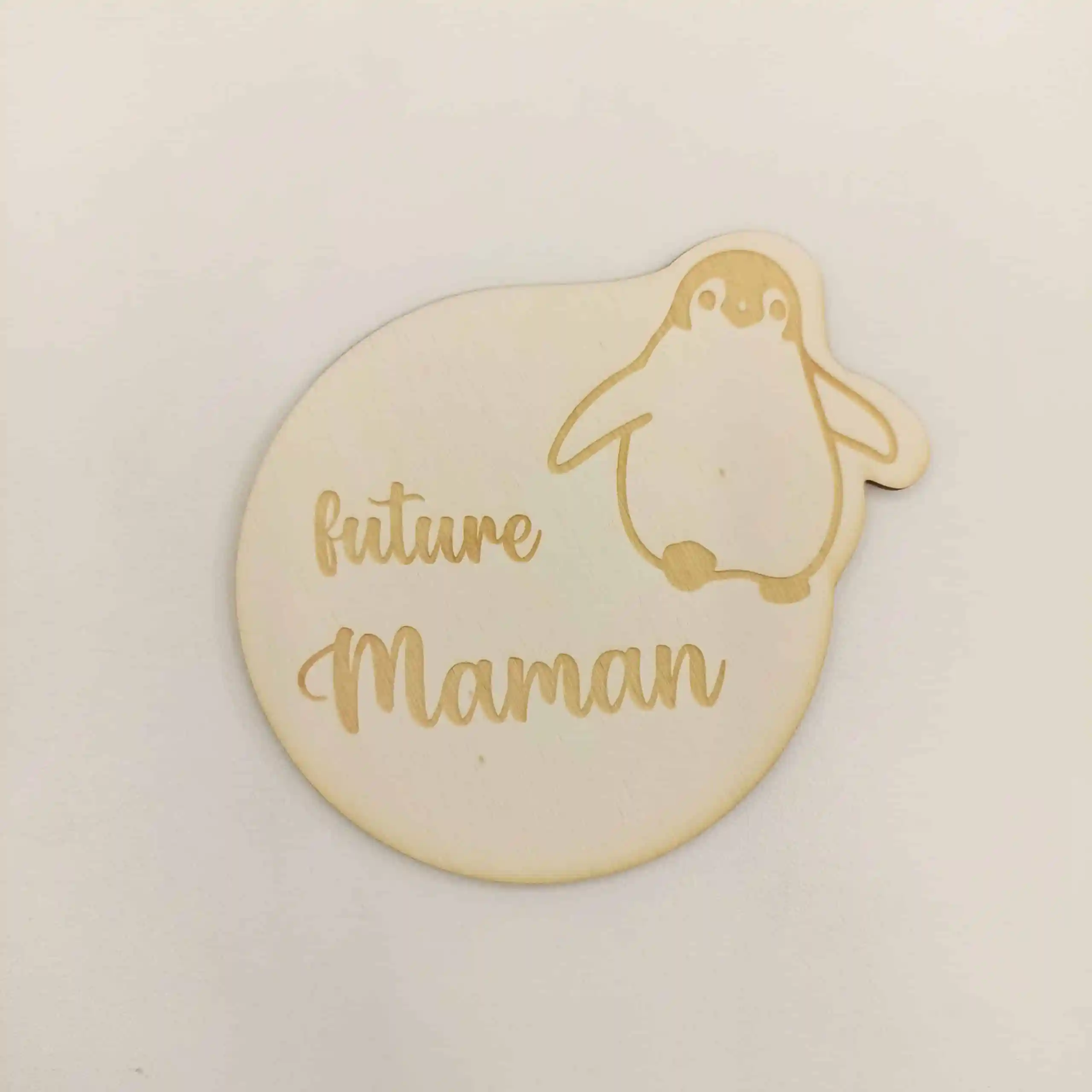 🌿 Carte en bois « Future maman » motif pingouin– une douce attention pour célébrer la maternité