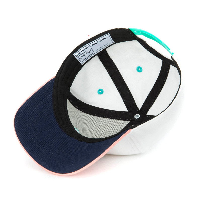 Visière courbée rose saumon, intérieur bleu marine