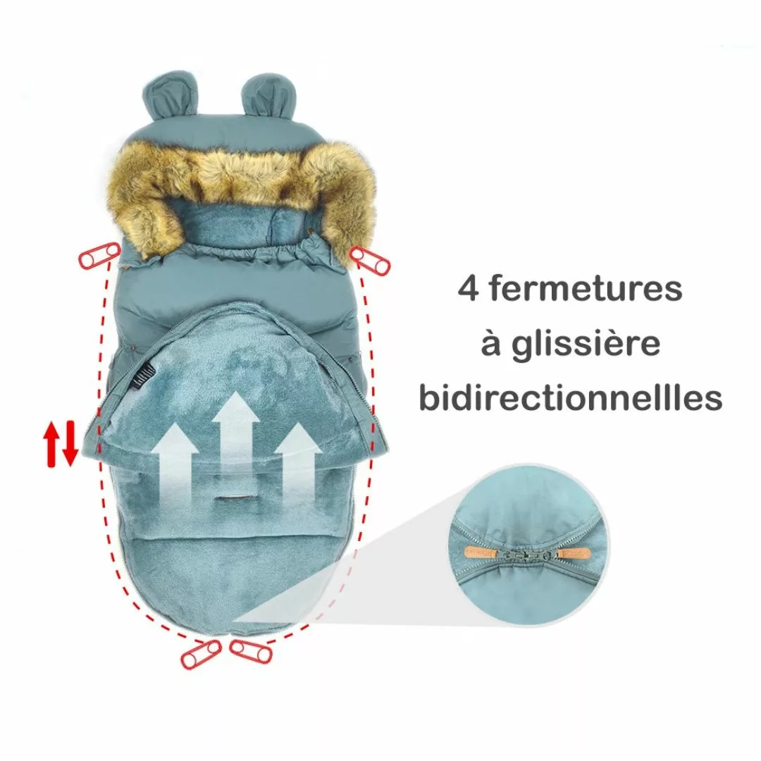 - Isolation en doudoune de qualité pour garder bébé au chaud même par grand froid.