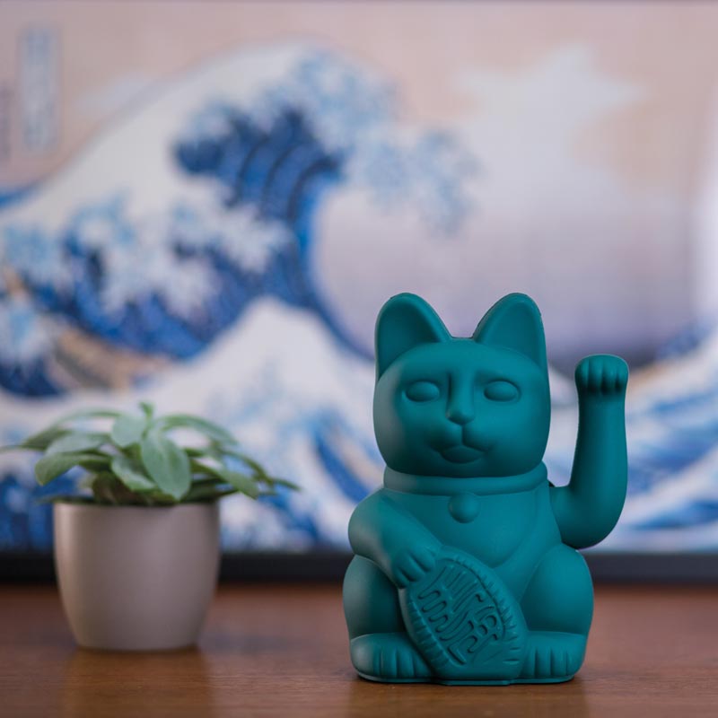 Souhaitez chance et prospérité à vos amis en leurs offrant ce chat porte-bonheur de la marque allemande Donkey. Ce maneki neko, également appelé Chat de la fortune, est revisité de façon contemporaine par sa matière plastique et son coloris unique et inhabituel pour cet objet provenant de la tradition japonaise. Ici, le vert symbolise la famille, encourageant le rapprochement et les liens entre les membres de la famille. Moderne et ludique: une fois la pile AA insérée (non fournie) la patte de l’animal bouge et semble vous saluer, comme s’il vous souhaitait la bienvenue. Cette petite statue en forme du…