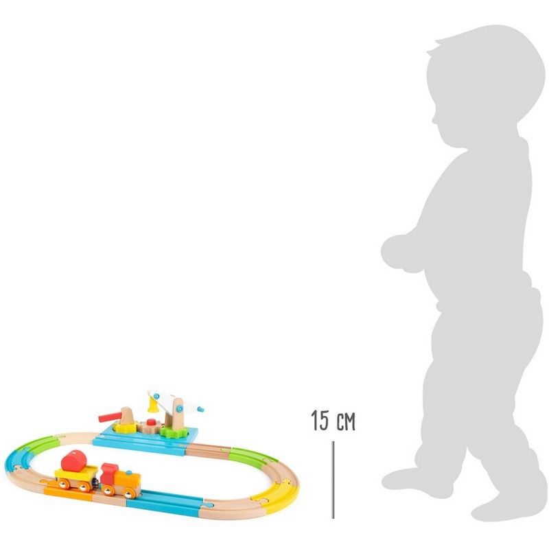 Dégagez la voie pour le train de marchandises ! Avec ce set de chemin de fer en bois en 16 parties, il s’agit de diriger le train en toute sécurité sous la grue et de charger et décharger le wagon avec le fret magnétique. Le point fort : la grue et la barrière peuvent être tournées par un mécanisme à engrenages et la grue ne peut être chargée que si la barrière bloque le chemin. De cette façon, les enfants doivent penser de manière ludique et logique, et leurs capacités motrices sont encouragées. Particulièrement pratique : les rails peuvent être…