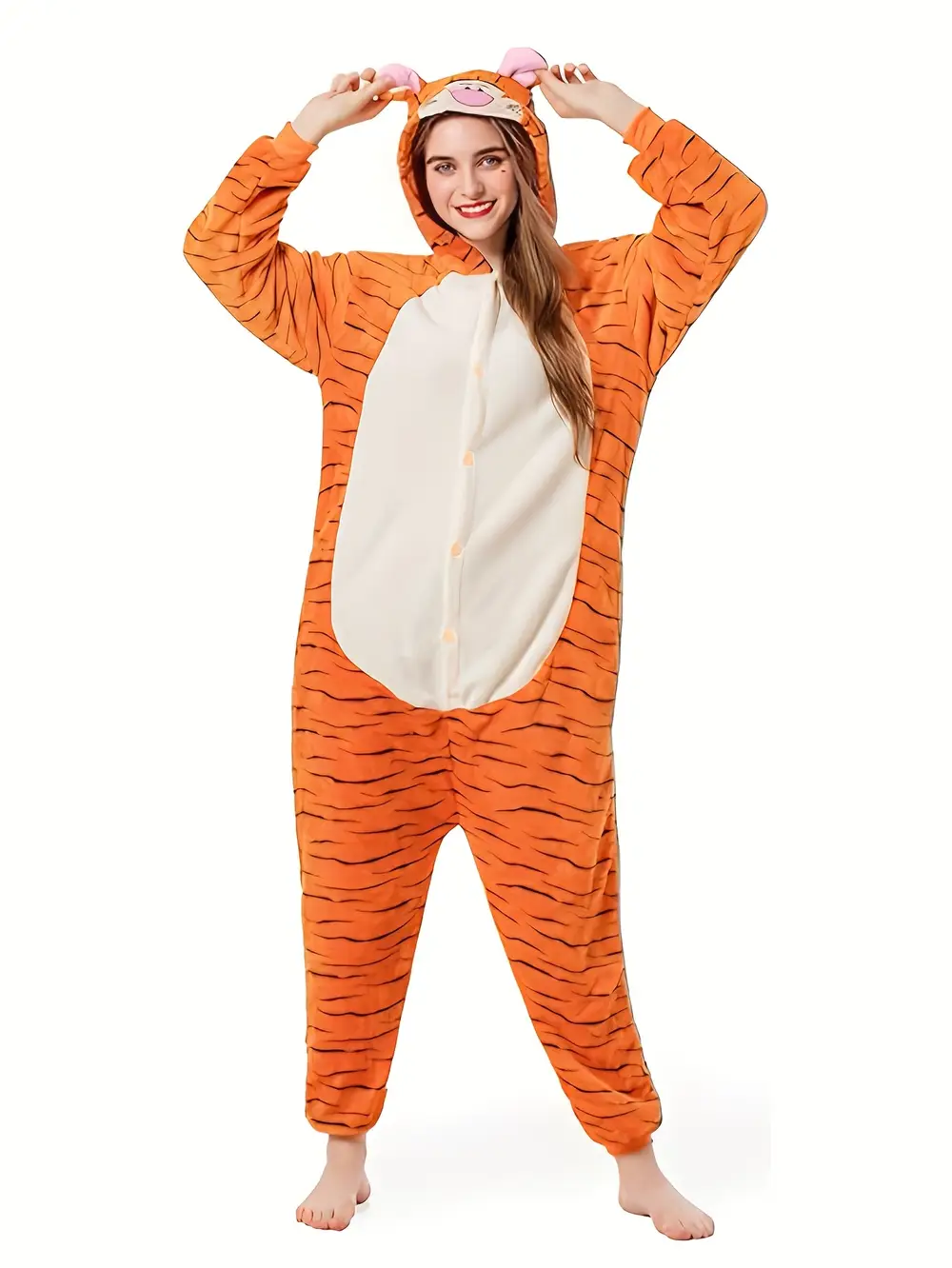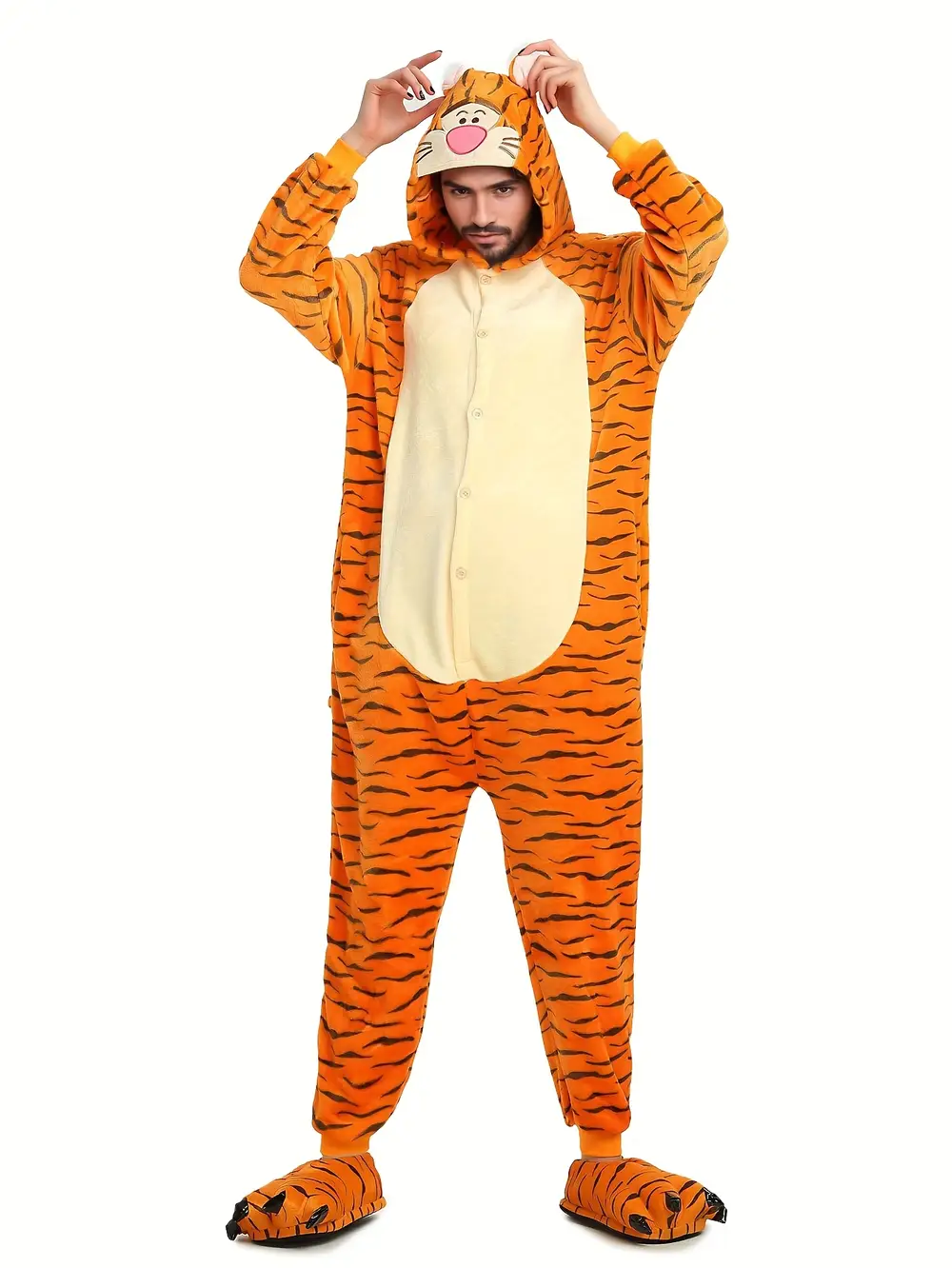 Combinaison pyjama tigre adulte en peluche – costume douillet pour cosplay et maison