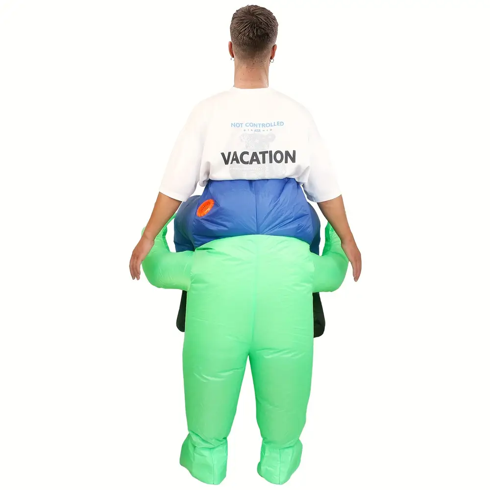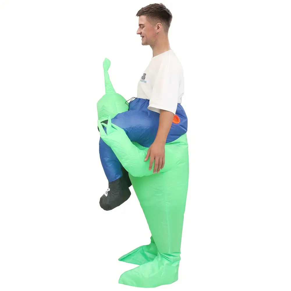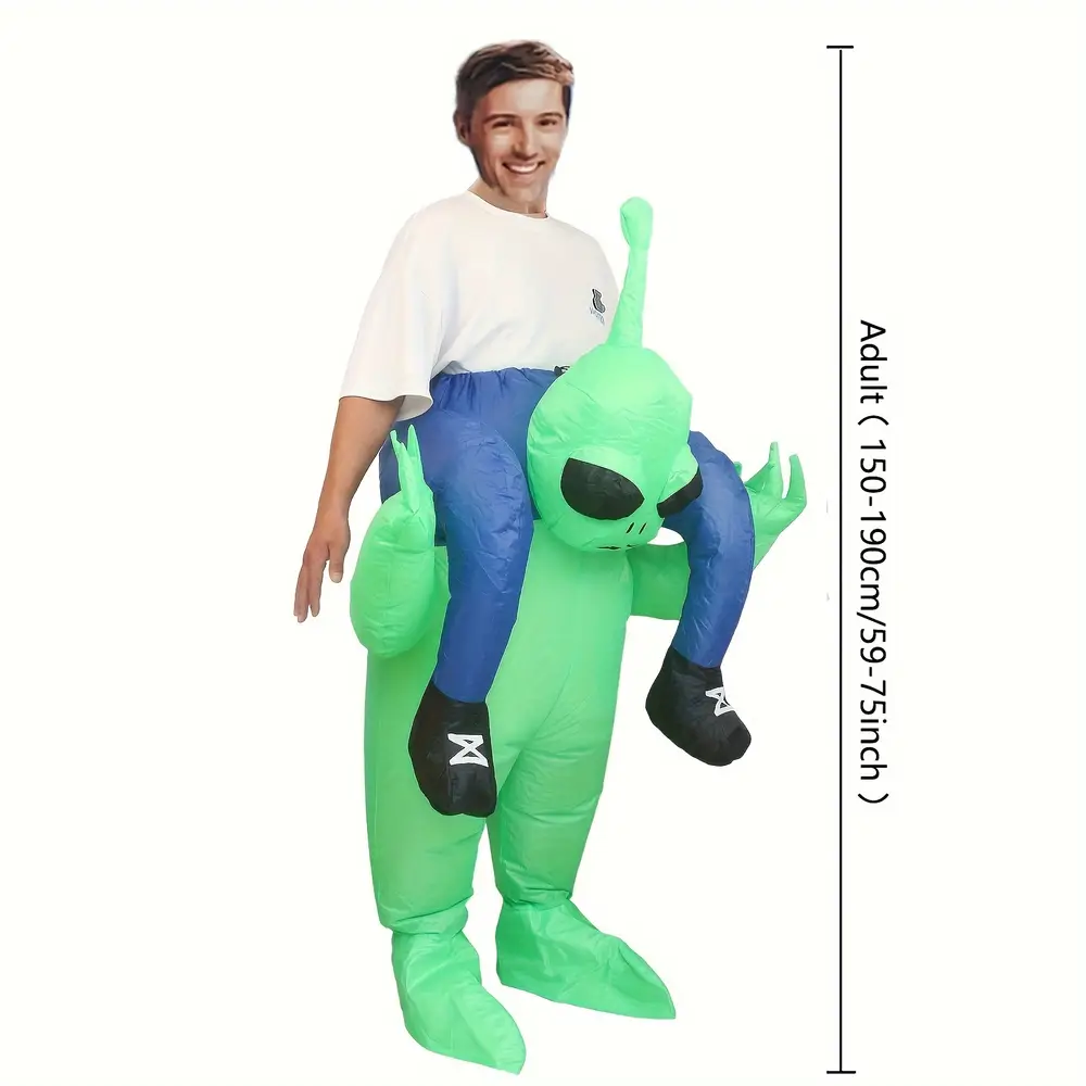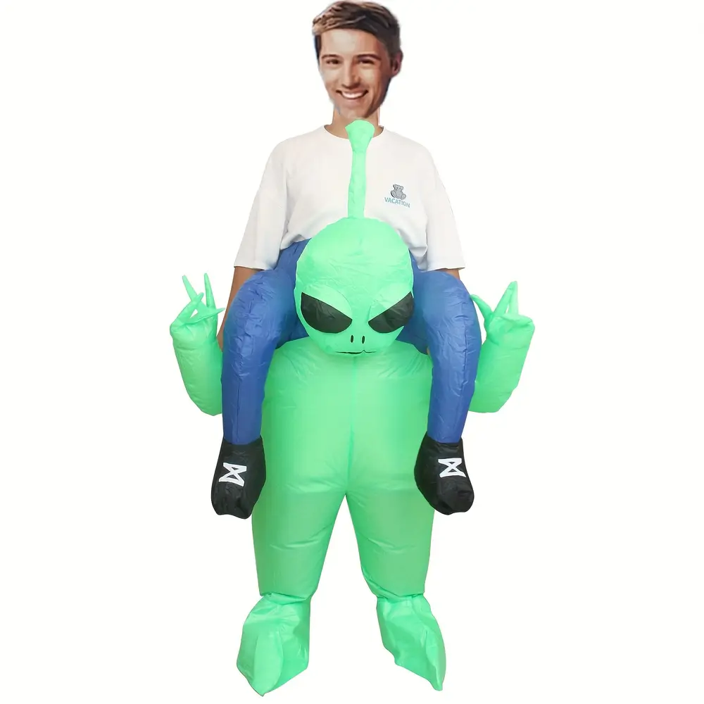 - Le style gonflable crée un effet visuel unique représentant un alien portant un humain.