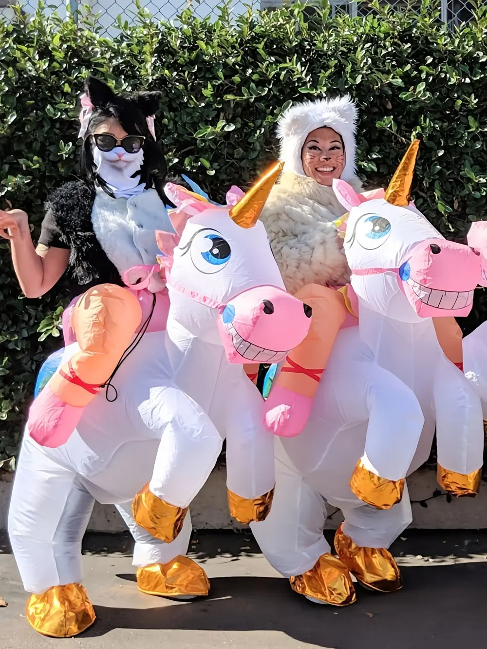 - Ce costume de licorne pour soirée déguisée est la solution parfaite pour un habillement gonflable pratique et sans tracas.