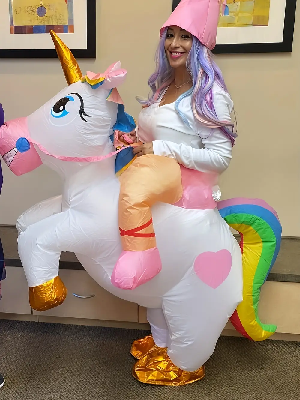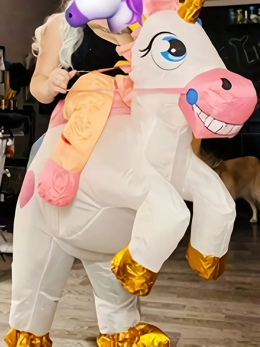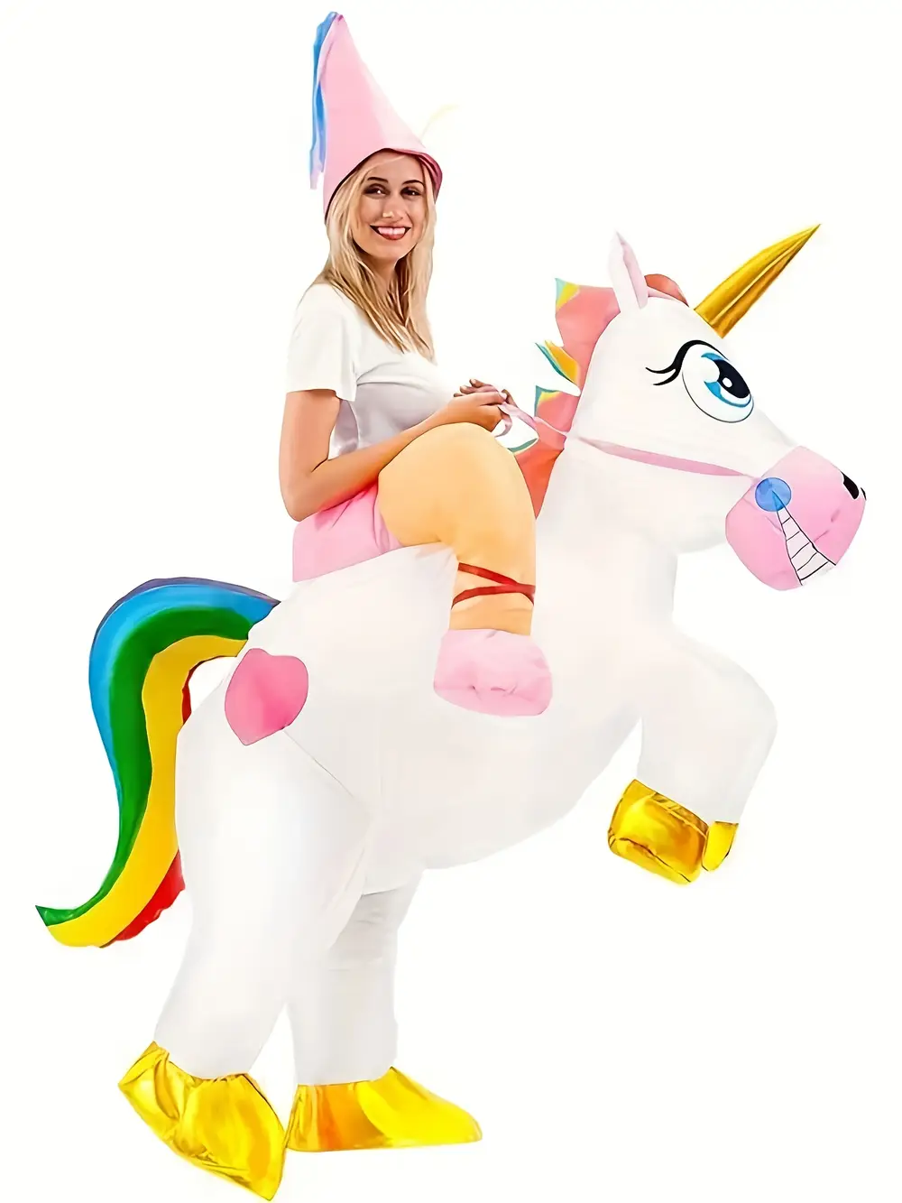 Costume licorne gonflable femme avec sabots dorés – idéal Halloween et fêtes