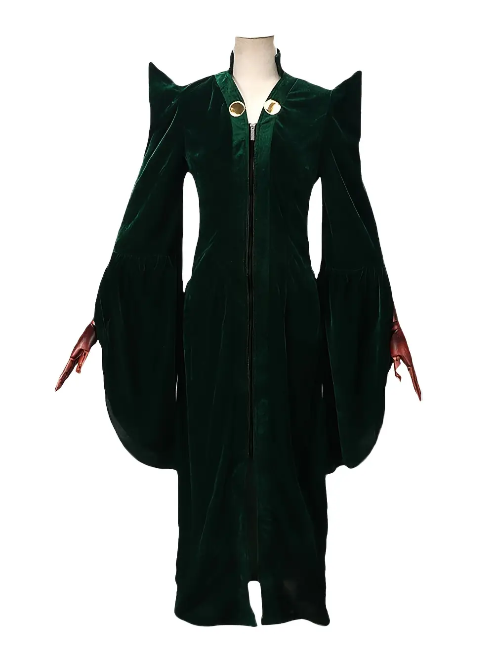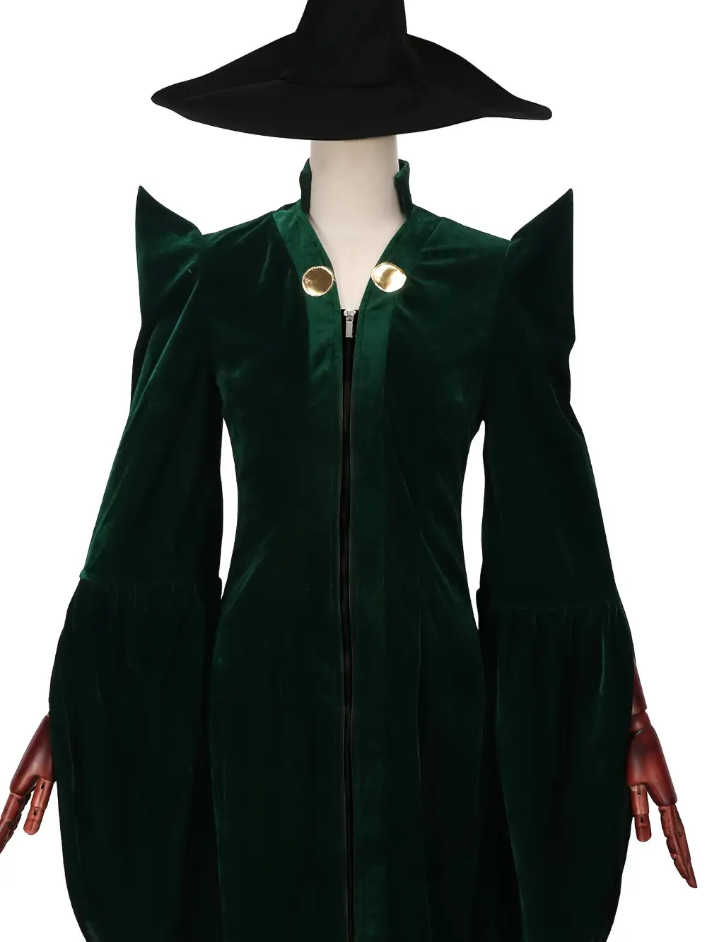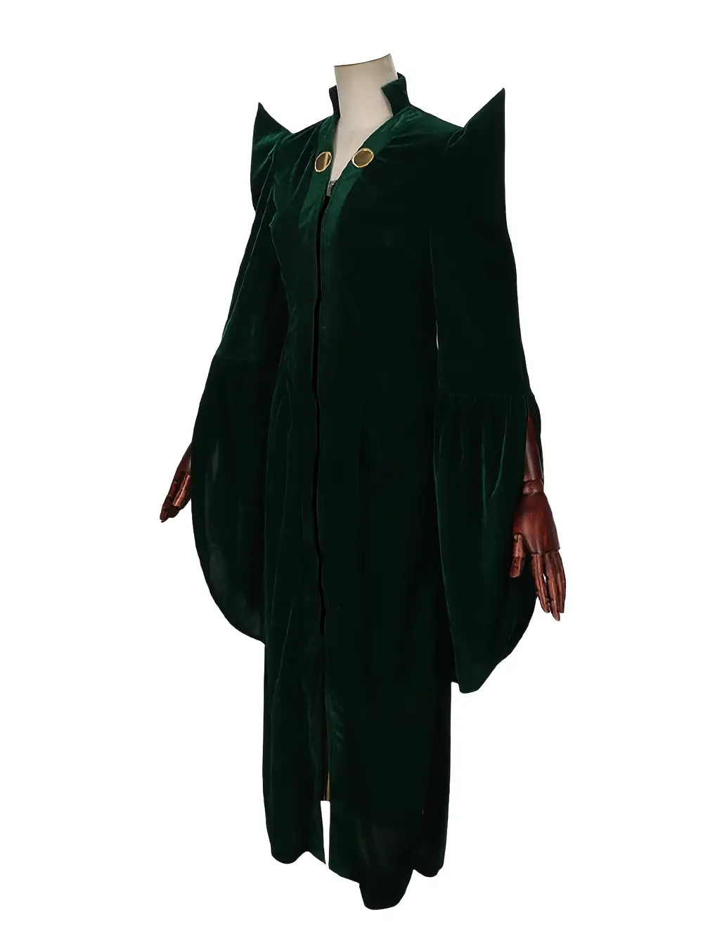Costume sorcière directrice longue cape verte style McGonagall pour cosplay