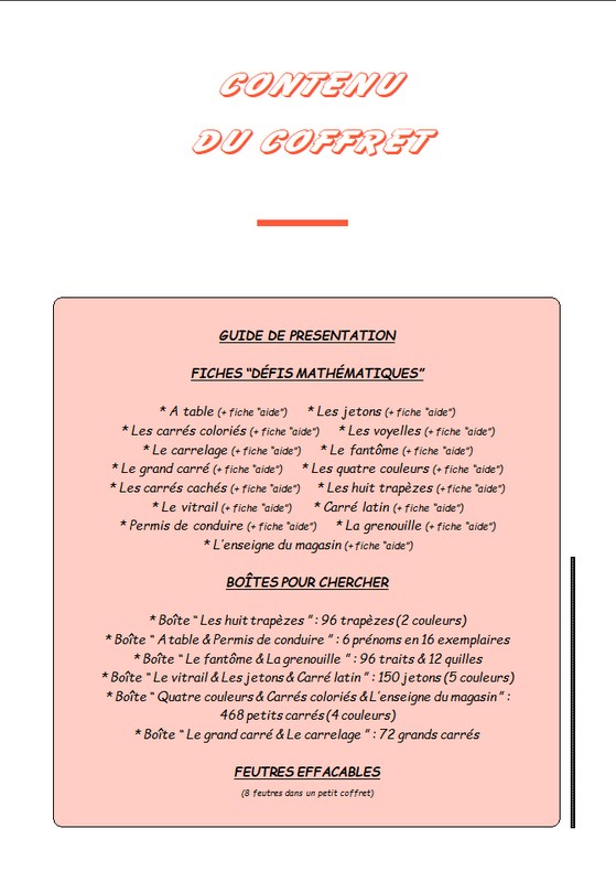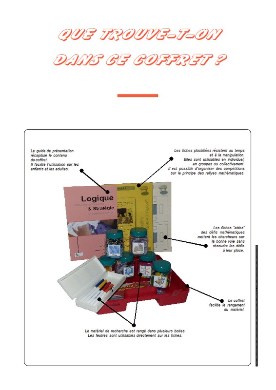 Pour apprendre les mathématiques par l’action et la communication, un coffret de problèmes amusants à résoudre. Il s’adresse à des enfants qui débutent dans la résolution de défis mathématiques. Idéal pour un ou plusieurs groupes, vous disposez d’un matériel de base pour mettre en place immédiatement votre activité. . CRÉATION – ESPACES ÉDUCATIFS
