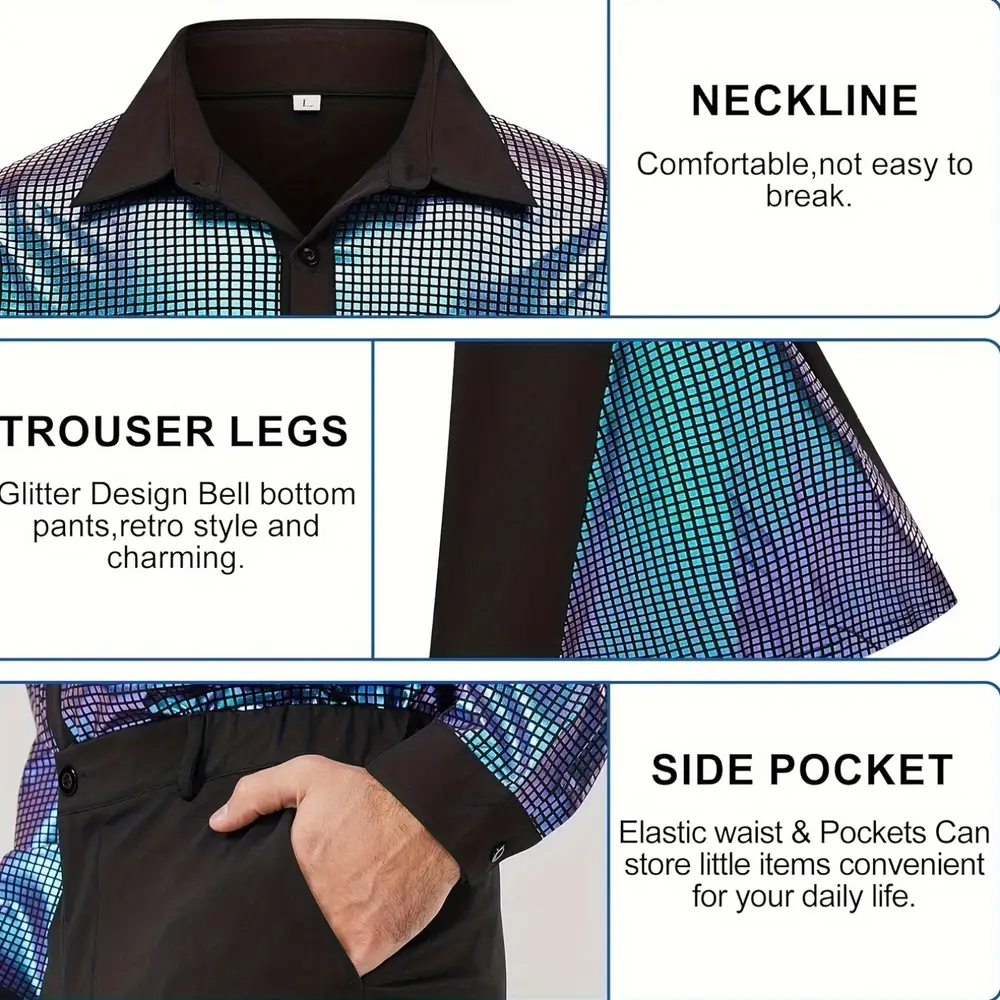 - Idéal pour un déguisement disco avec chemise laser assortie à son pantalon évasé