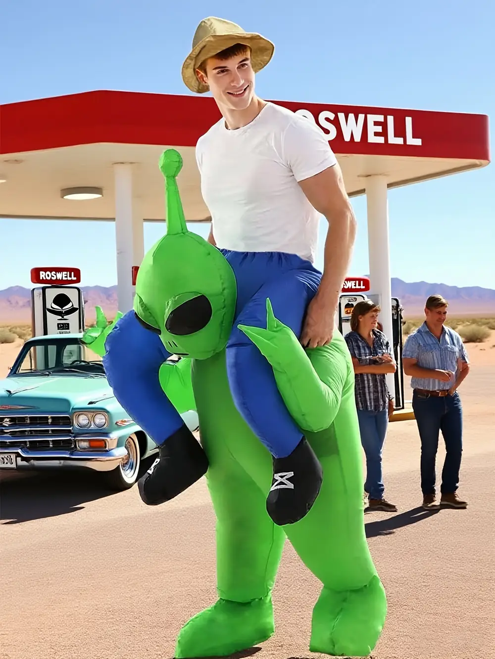 Un costume alien gonflable qui attire tous les regards
