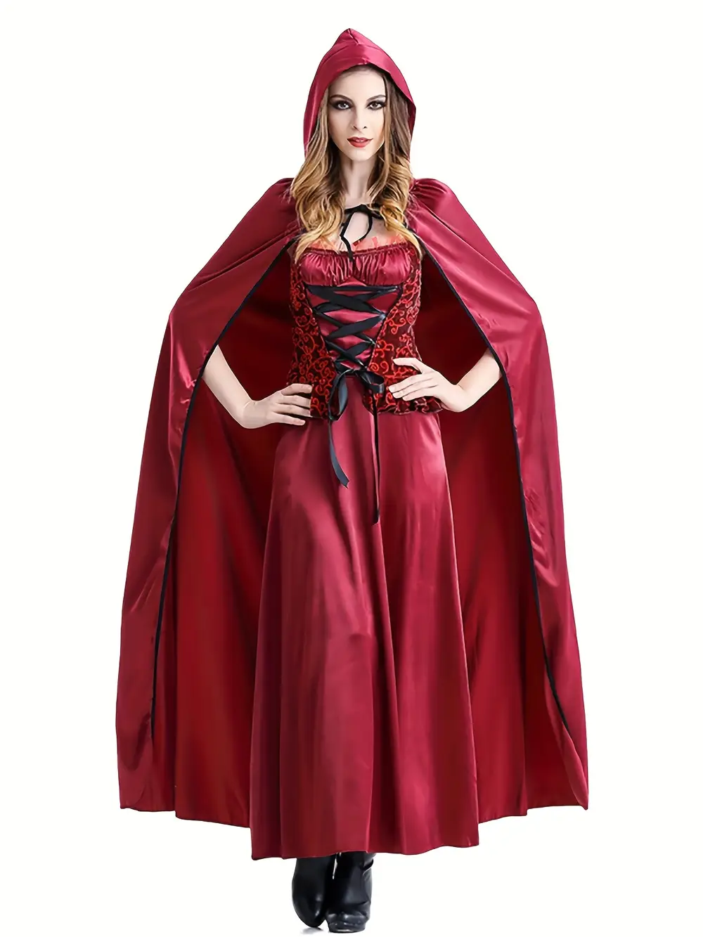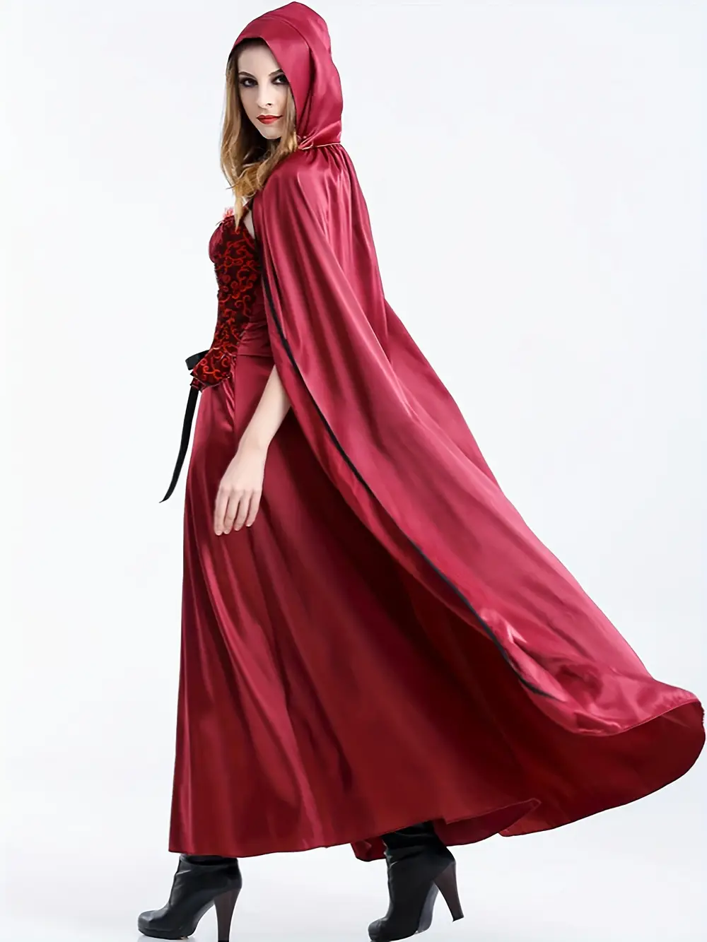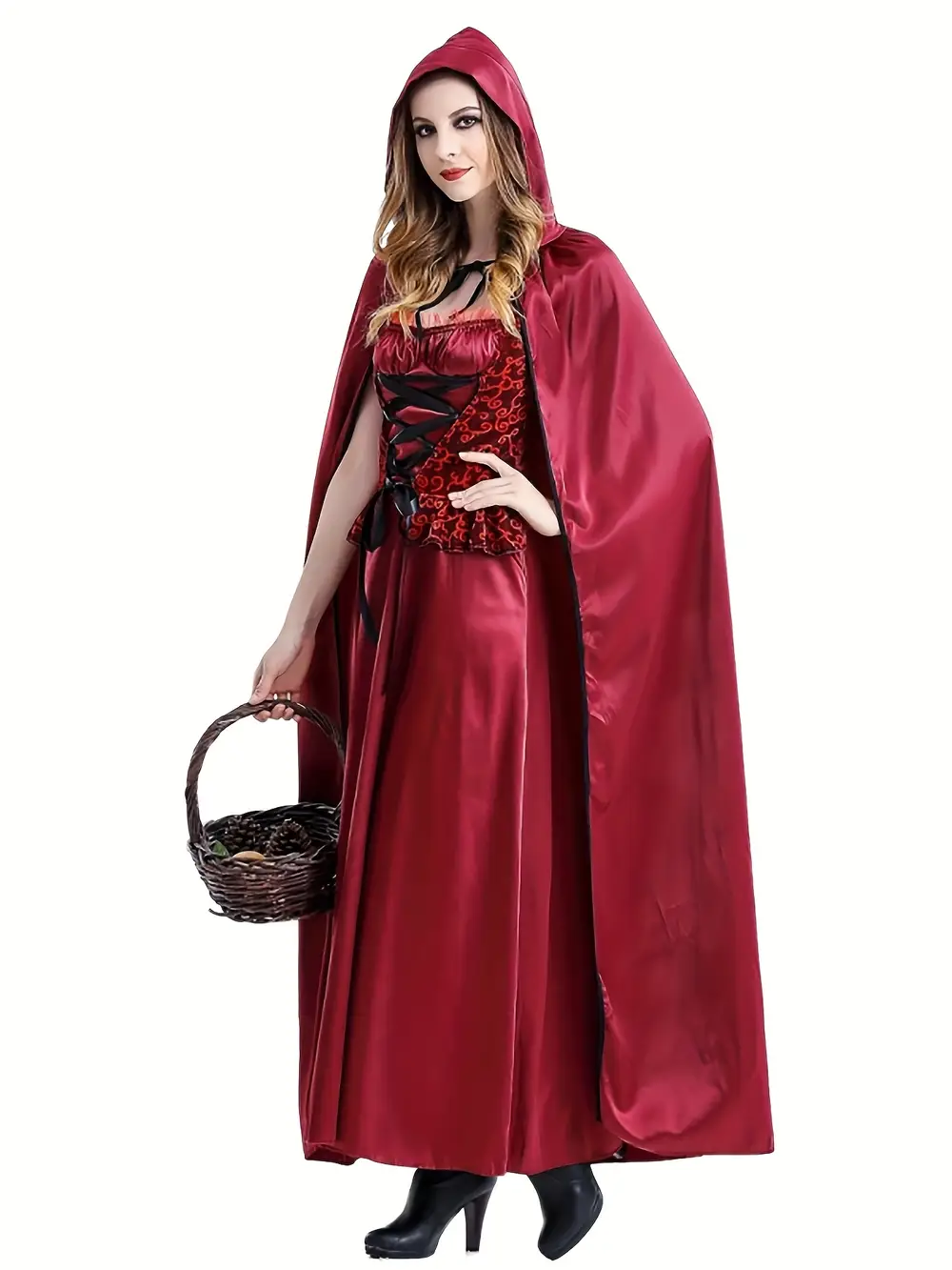 - L’ensemble robe Petit Chaperon Rouge comprend une cape à capuche, des manches romantiques et un corsage travaillé aux finitions douces.