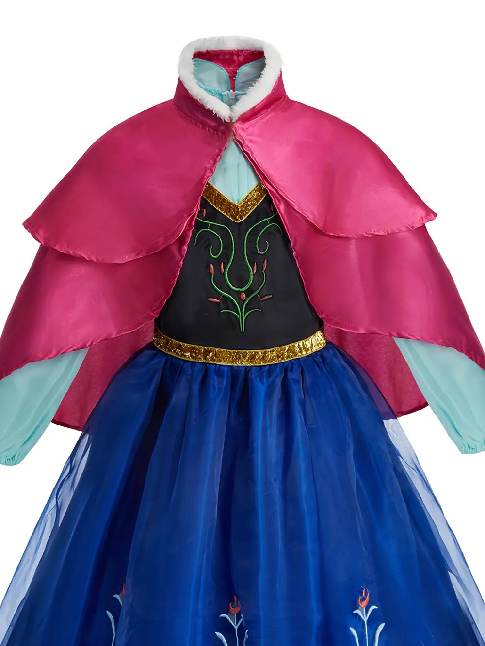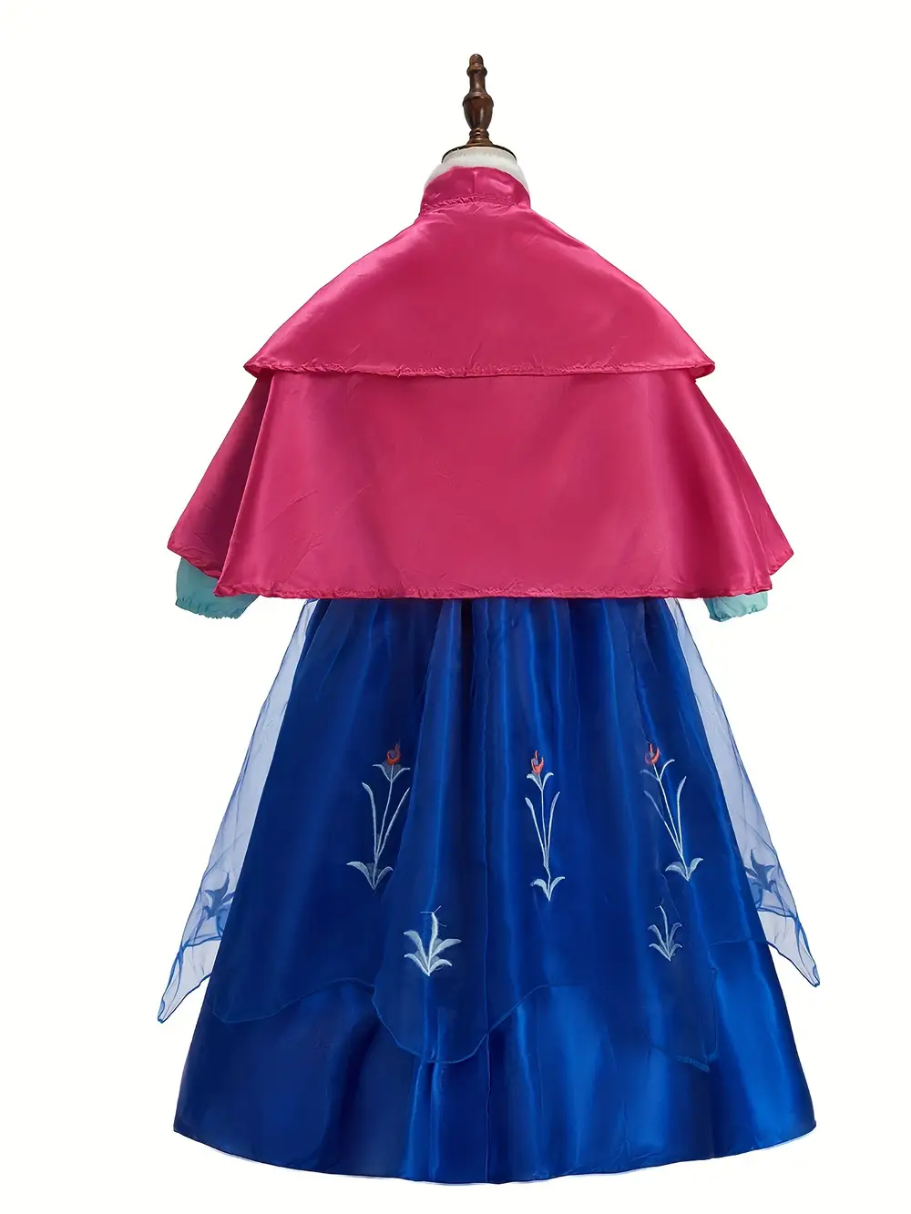 - Ce déguisement fille 3-10 ans comprend : robe bleue, cape rose, perruque, gants, couronne et baguette magique
