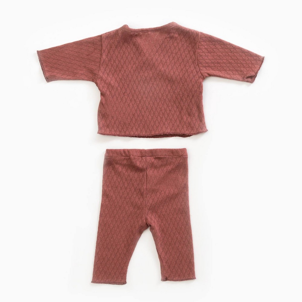 Ensemble gilet et pantalon rouille – Play Up – en coton biologique.