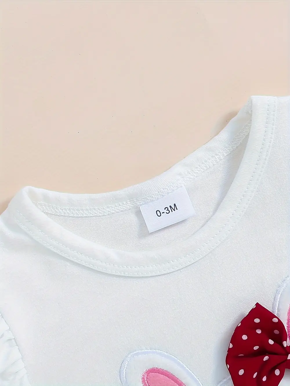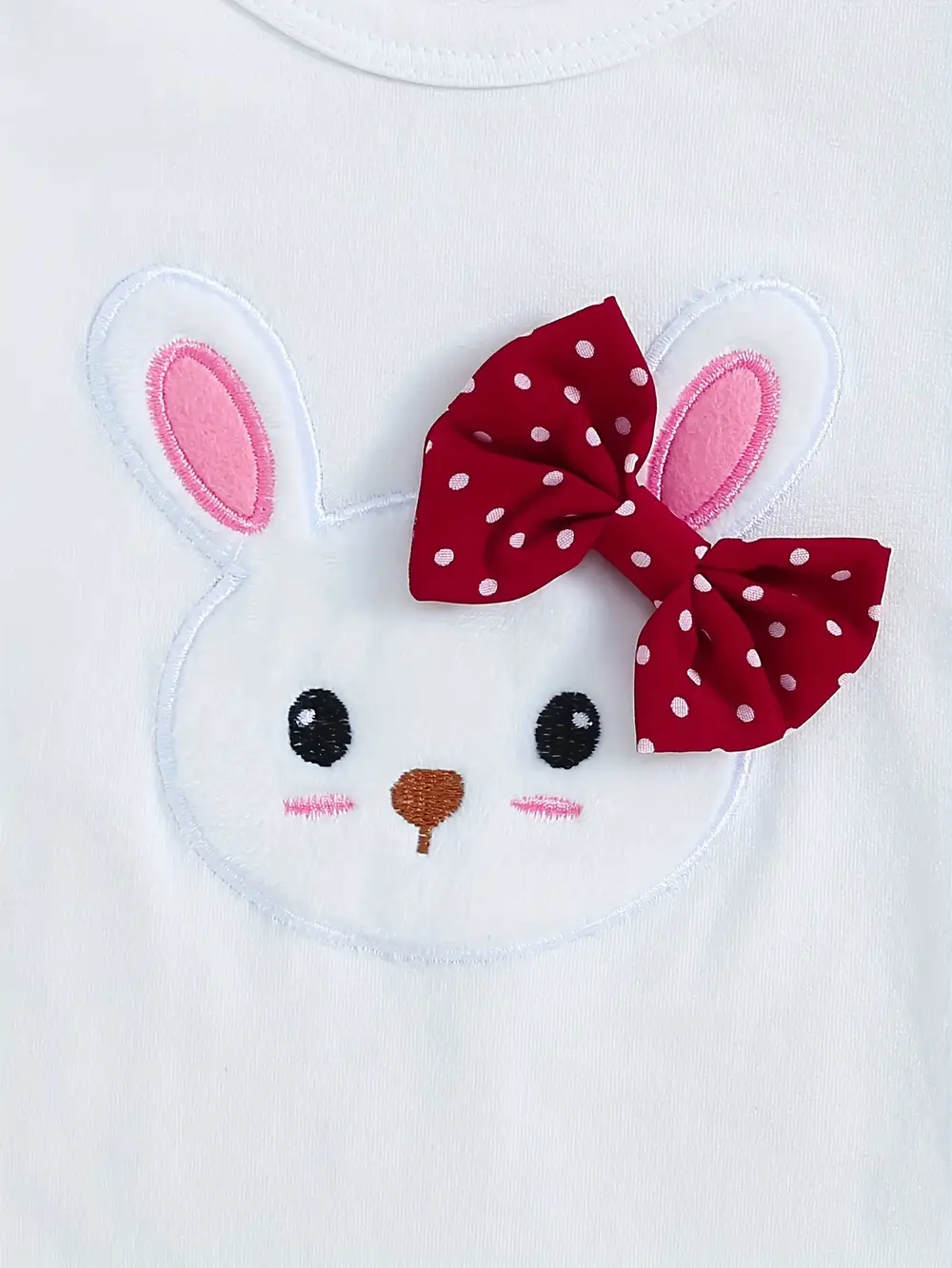 - Le body brodé présente un adorable nœud de lapin et des finitions soignées qui mettent en valeur la tenue élégante.