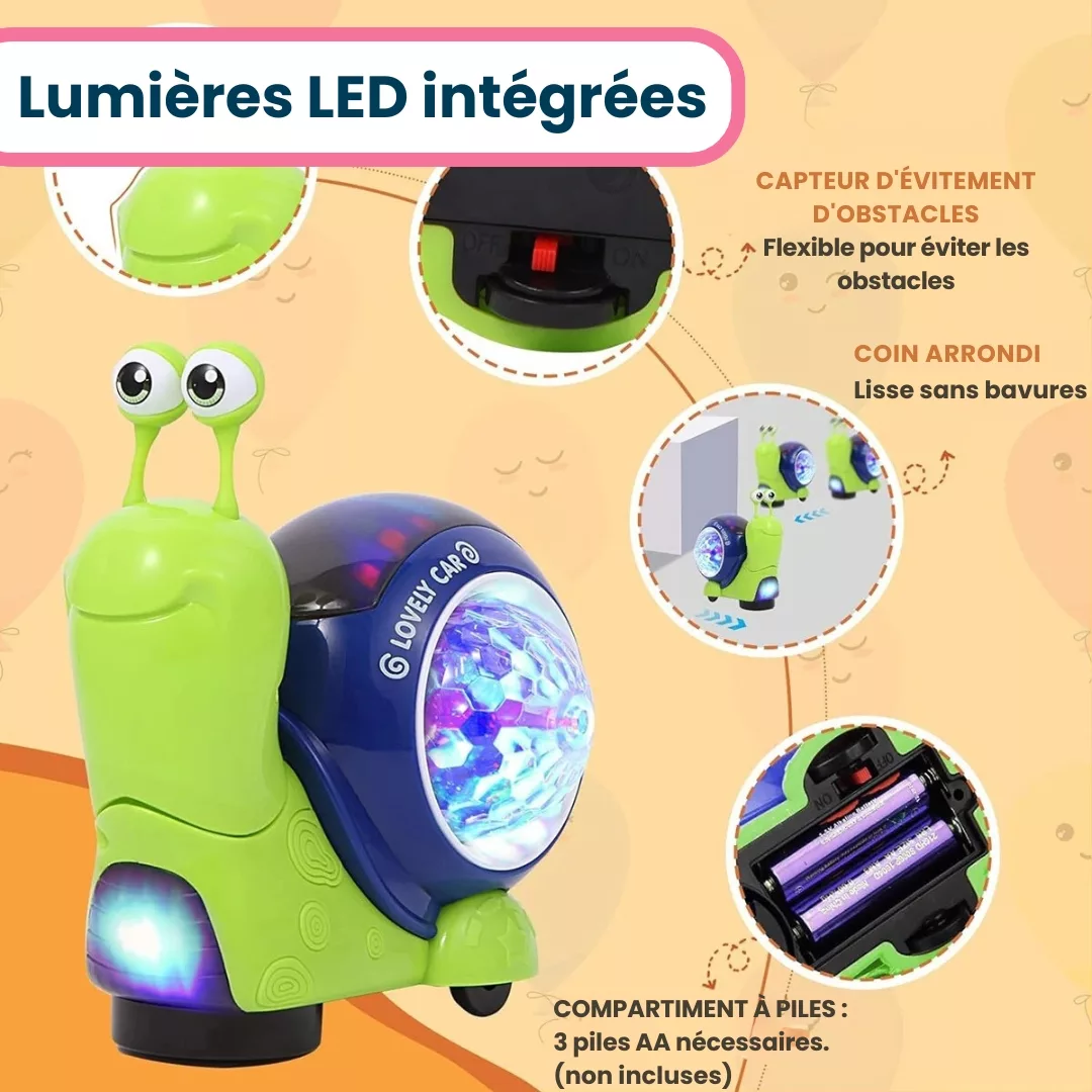 - L’escargot marche de manière autonome, stimulant la motricité de votre enfant.