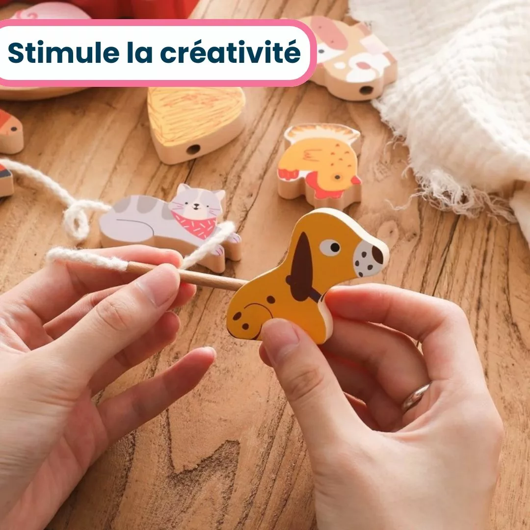 - Jouet en bois naturel conçu selon les principes Montessori pour un apprentissage actif.