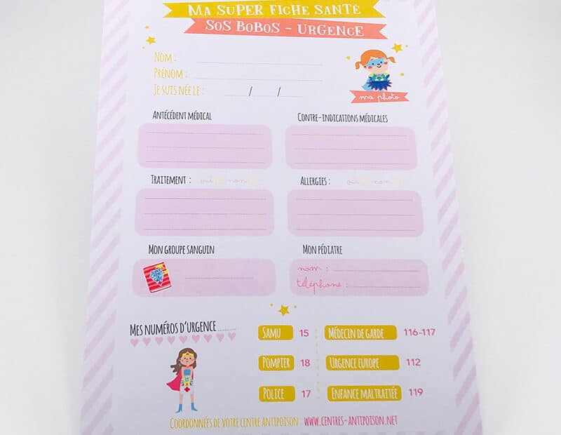 La fiche d’urgence est une carte de couleur nominative fille ou garçon pour la repérer plus facilement en cas d’urgence, elle reprend toutes les informations essentielles sur la santé de l’enfant gardé. Elle vous permettra une prise en charge la plus adaptée à l’enfant en cas de besoins.