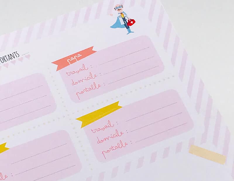 ★ Les coordonnées des personnes à contacter maman – papa ou la possibilité de mettre une tiers personne
