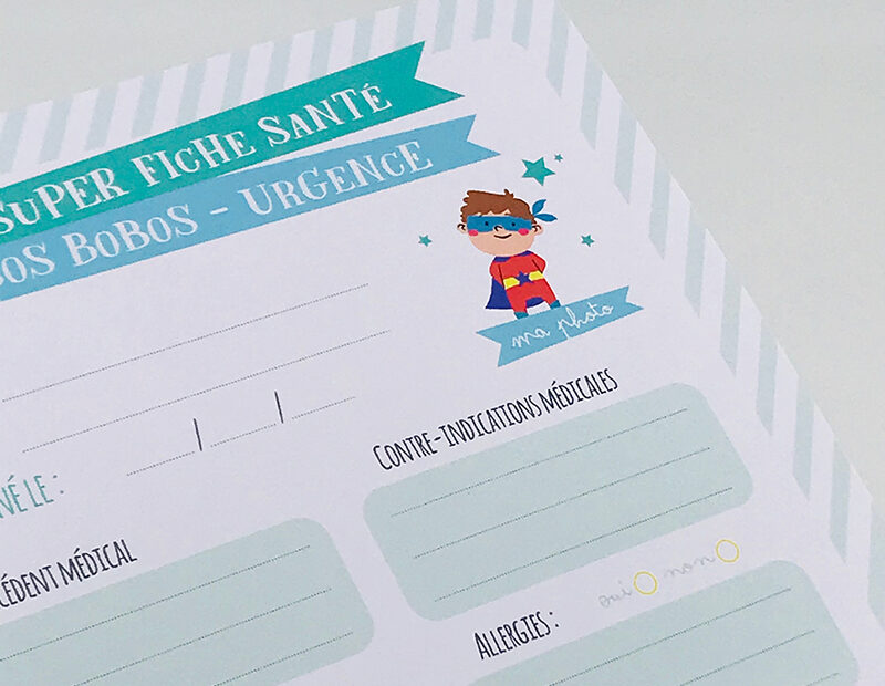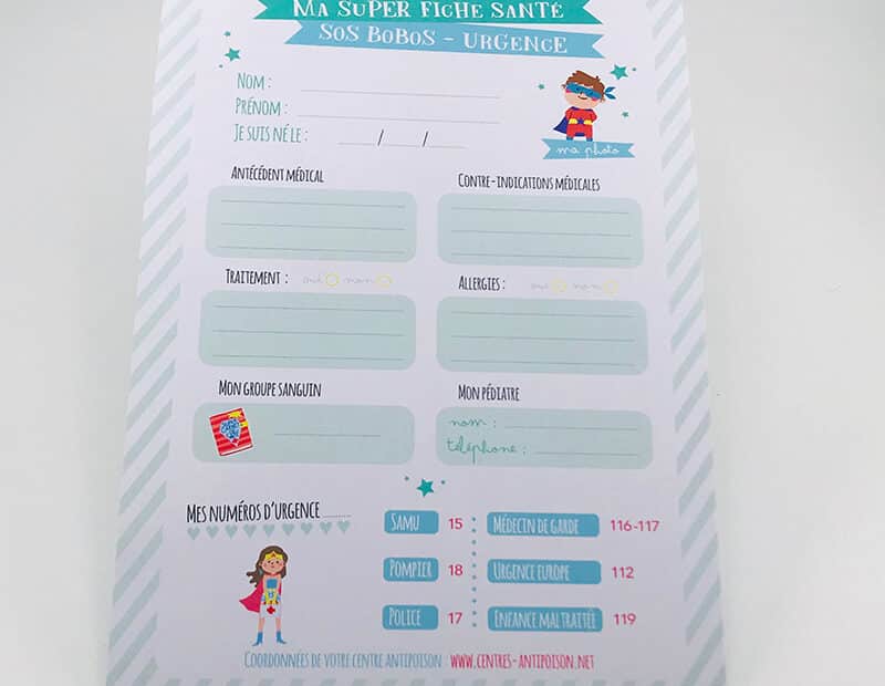 La fiche médicale d’urgence Dookids est le document indispensable qu’il faudrait toujours avoir avec soi, à son domicile et lors de vos sorties. Vous y trouverez toutes les informations sur l’enfant en cas de problème de santé. 📦 Livraison suivie dès 2,90 € – selon votre panier 🎁 Frais de port offerts dès 55 € d’achat + une jolie surprise ✨ rien que pour vous !
