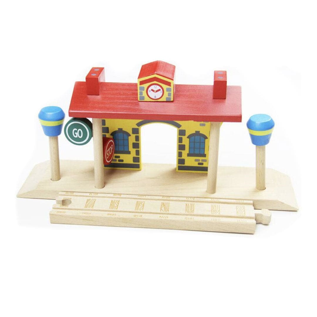 Ajouter une dimension conviviale à un circuit avec cette gare pour train en bois permet de créer de nombreuses histoires.